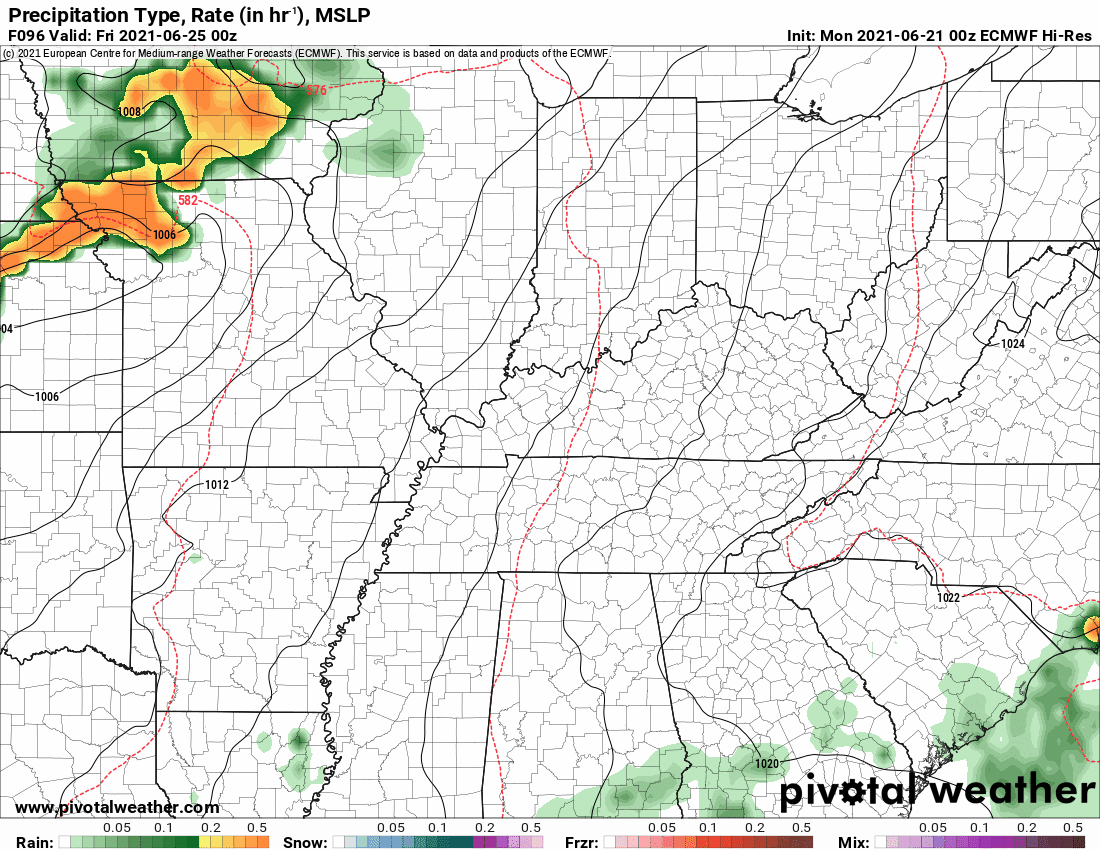 The front is forecast to push out of the region by Sunday. Confidence, however, in that happening is low. Typically, during the Month of June and July, these fronts will stall or wash out. That will need to be monitored.