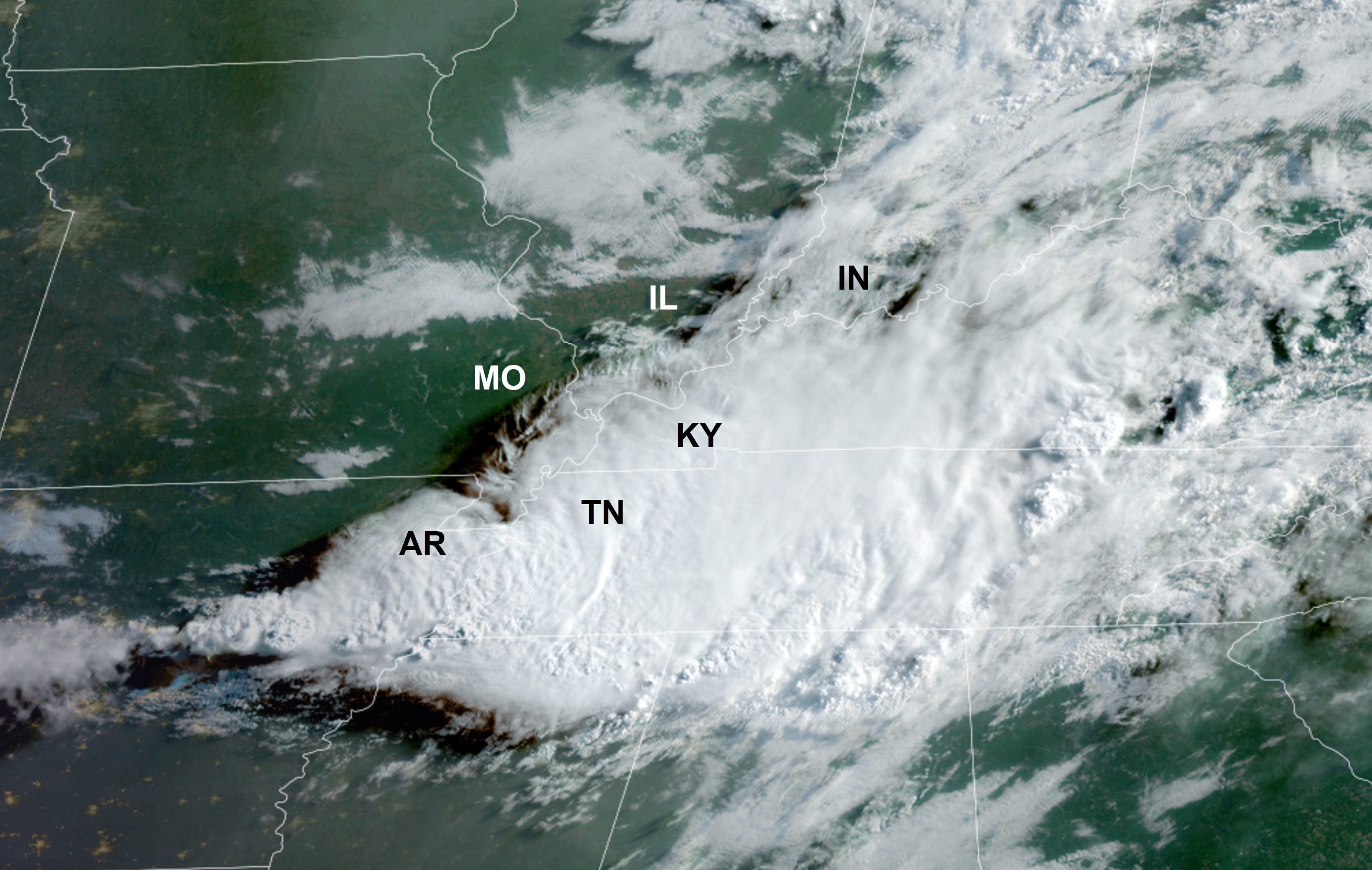 There were reports of quarter-sized hail and 70+ mph wind gusts.  There was some damage in southern Illinois and western Kentucky.  Northwest Tennessee, as well.