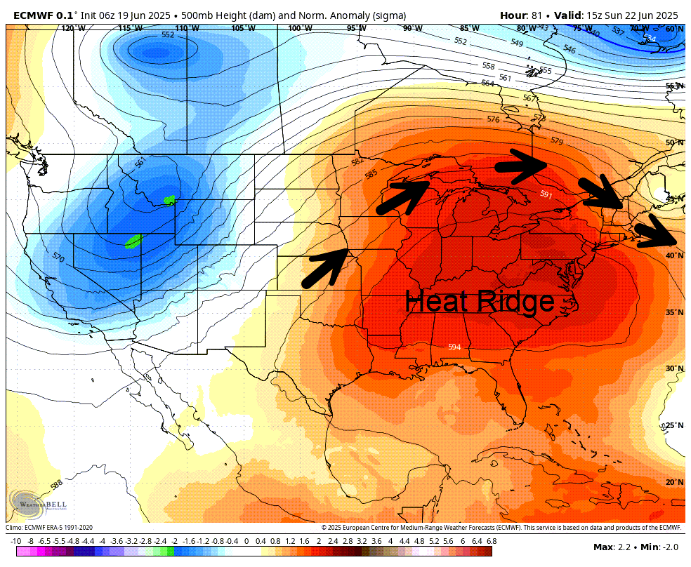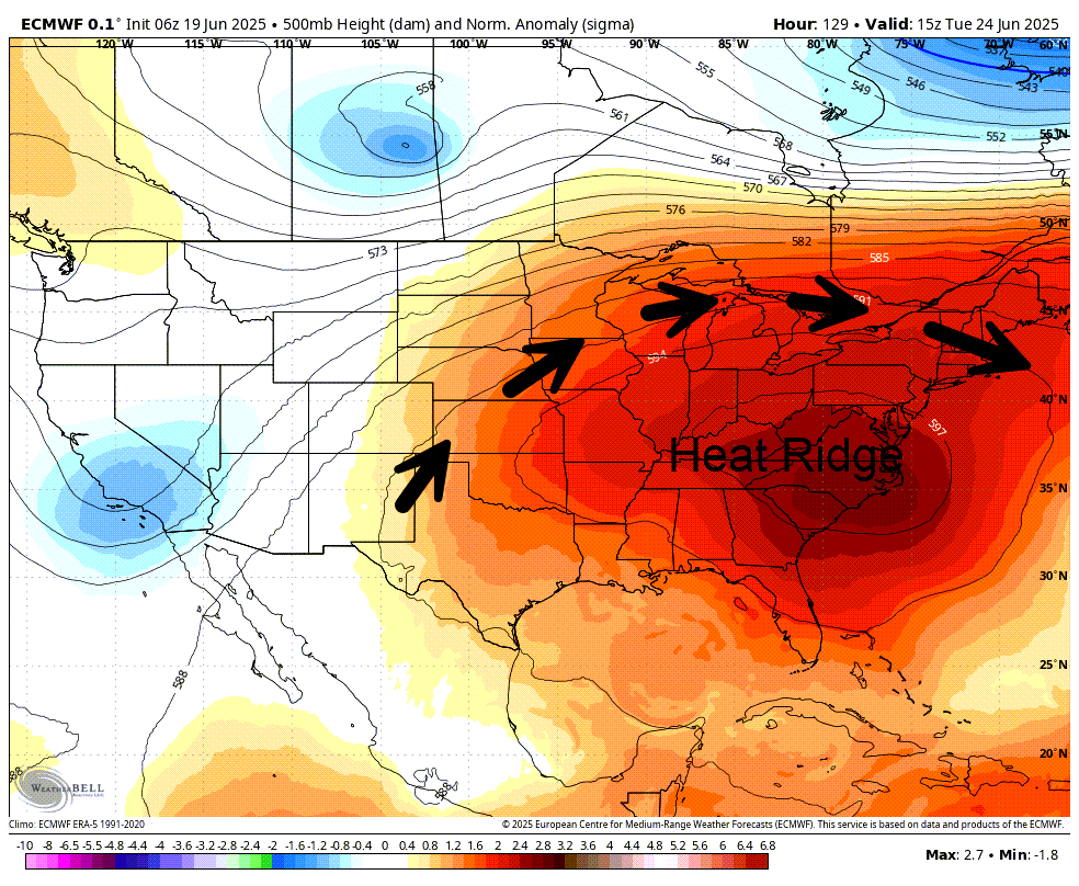 The reason for the heat will be a ridge.  A ridge typically means heat during the summer months.
