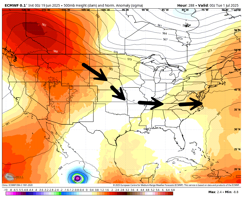 The EC breaks it down around the end of the month.  That would mean higher chances of rain.  Long way off.  I will monitor trends.