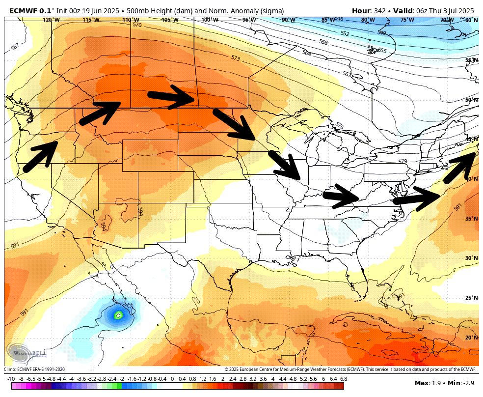 When the ridge breaks down, then northwest flow can develop.   Northwest flow can bring showers and thunderstorms.