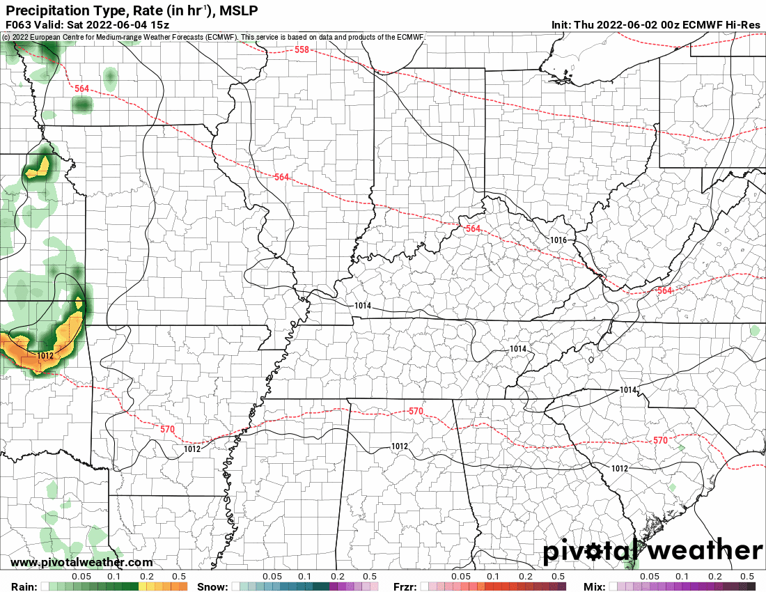What is the chance of precipitation? MO Bootheel ~ 40% / the rest of SE MO ~ 40% / I-64 Corridor South IL ~ 40% / the rest of South IL ~ 40% / West KY ~ 40% / NW KY (near Indiana border) ~ 40% / NW TN ~ 40%