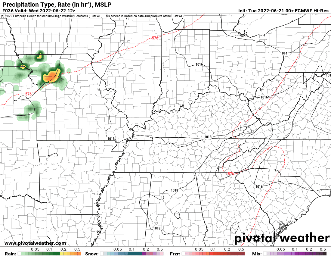 What is the chance of precipitation? MO Bootheel ~ 40% / the rest of SE MO ~ 40% / I-64 Corridor South IL ~ 40% / the rest of South IL ~ 40% / West KY ~ 40% / NW KY (near Indiana border) ~ 40% / NW TN ~ 40%
