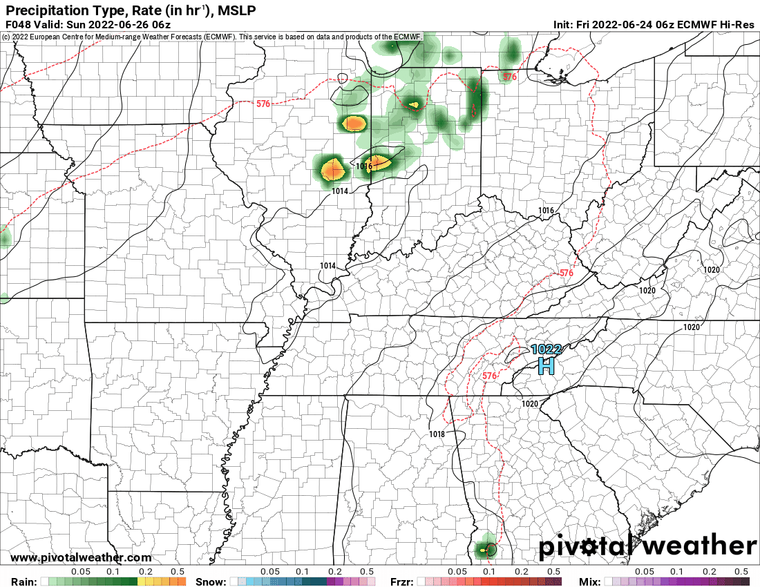 What is the chance of precipitation? MO Bootheel ~ 40% /  the rest of SE MO ~ 40%  /    I-64 Corridor South IL ~ 40% /  the rest of South IL ~ 40%  /  West KY ~ 40%  /   NW KY (near Indiana border) ~ 40%  /  NW TN ~ 40%