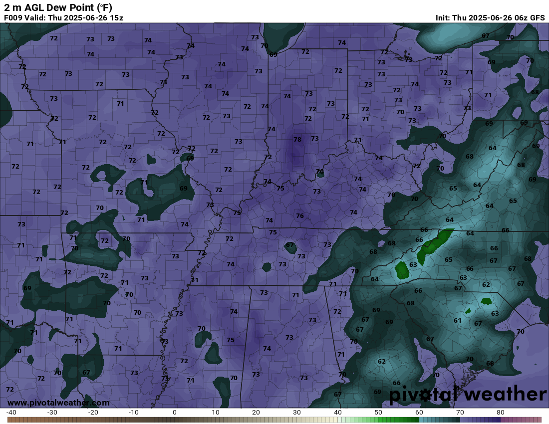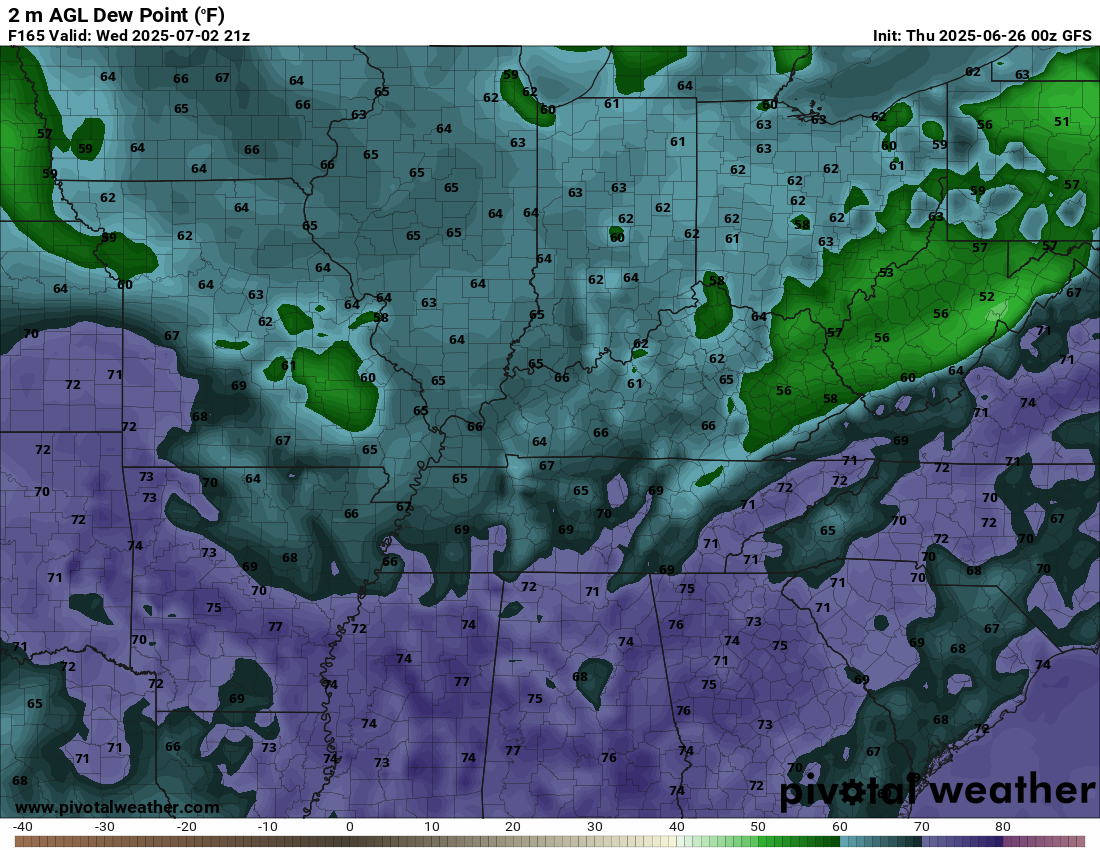Let me show you some dew point maps.  Dew point is a measure of moisture in the atmosphere.  Dew point is what makes it feel so muggy outside.