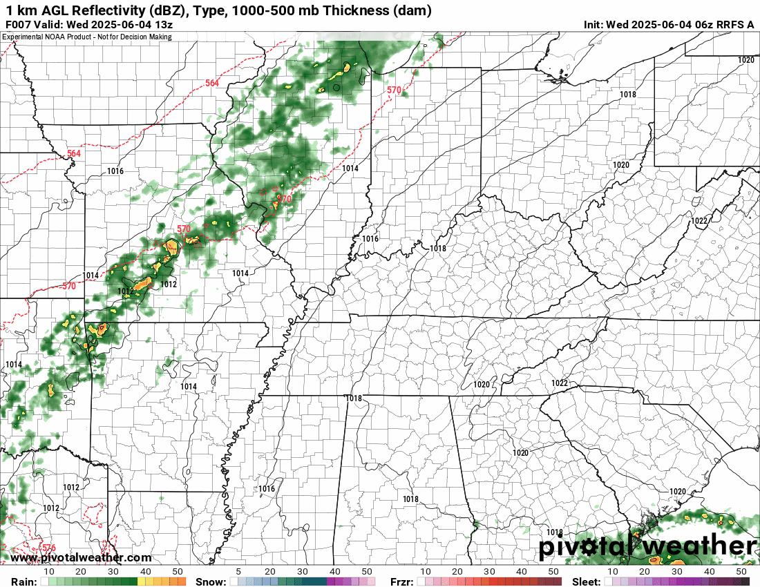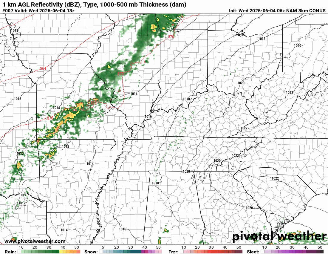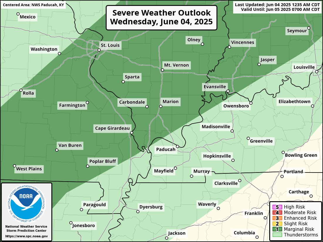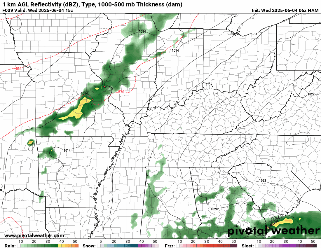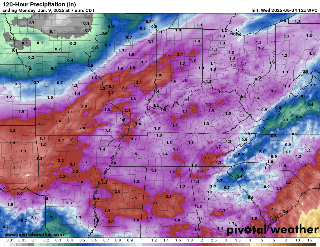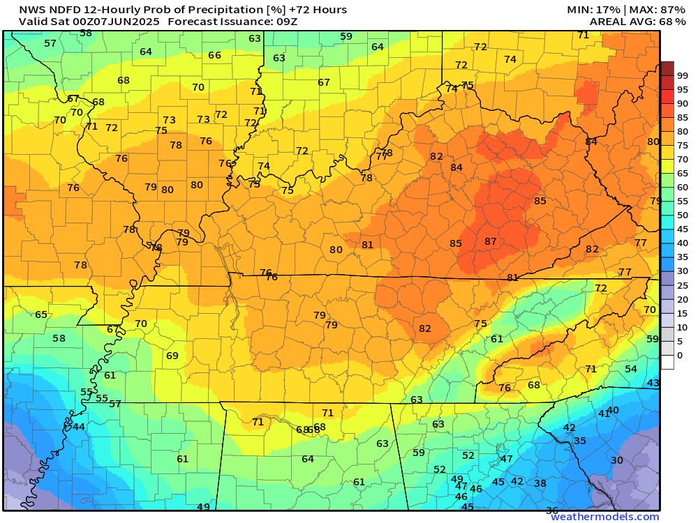 Wednesday (rain chances will be higher over Missouri and Illinois vs Kentucky/Tennessee)