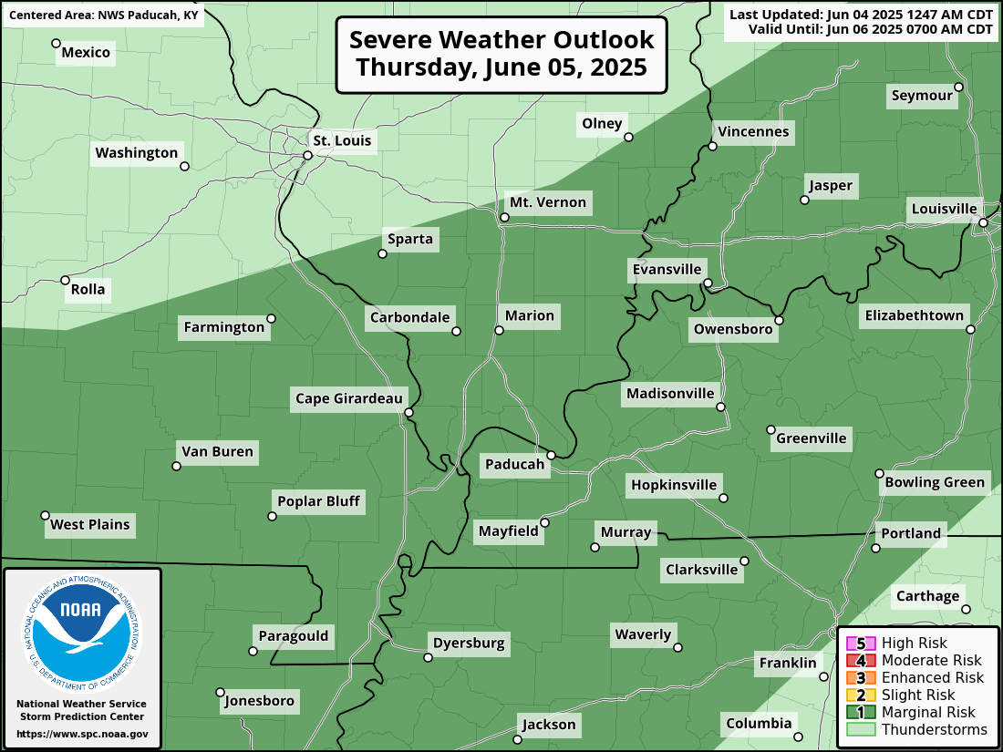There will be a few showers and thunderstorms today across mainly southeast Missouri and southern Illinois. The chance of rain will be lower over Kentucky and Tennessee.