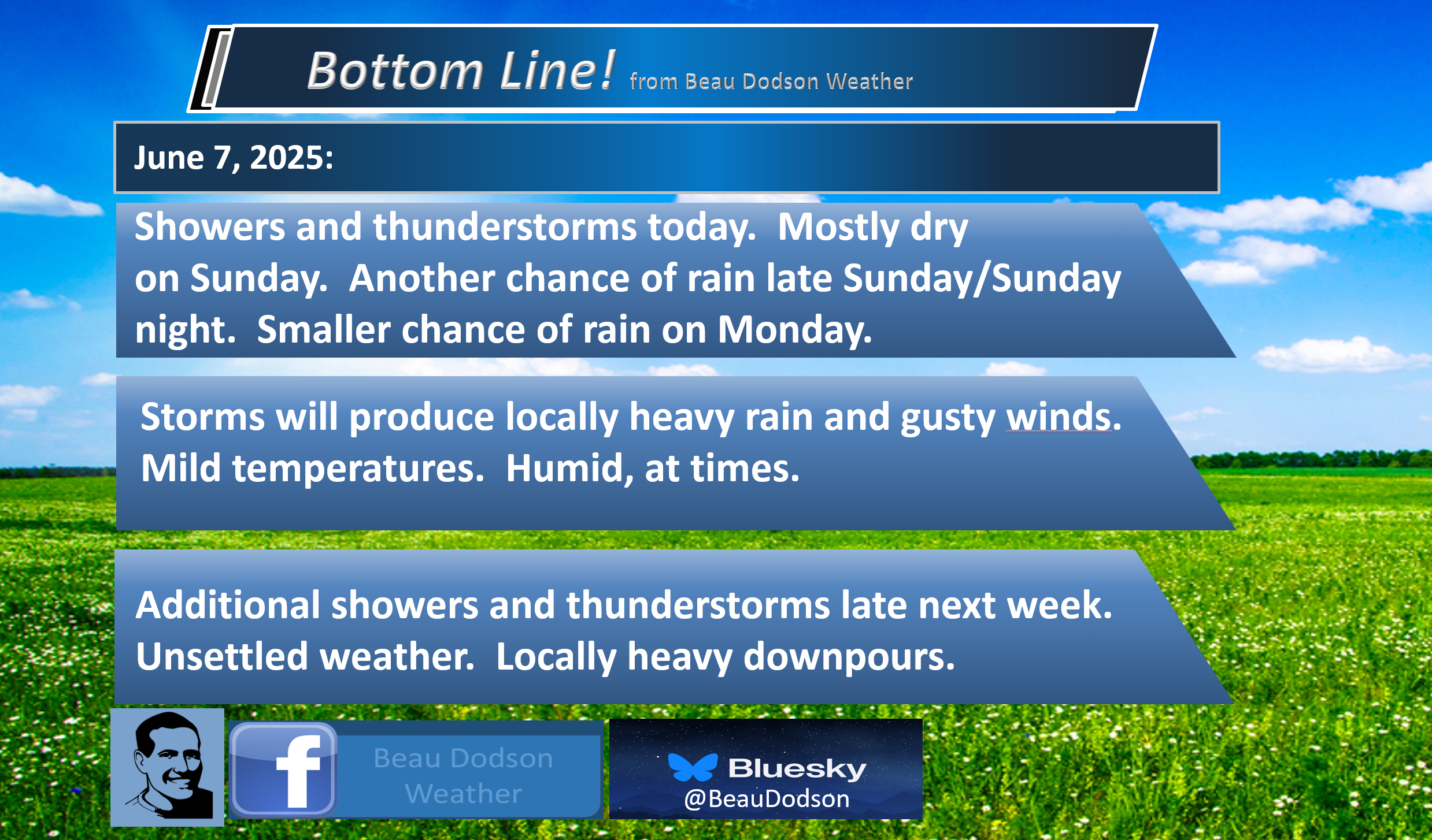 I will monitor a few more storms on Sunday night. Another chance late next week. Any storms in June could produce heavy rain.