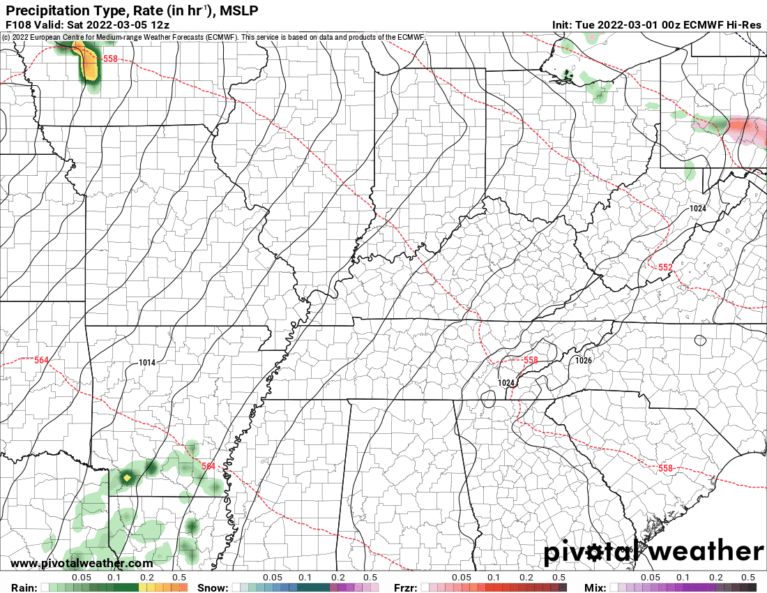 What is the chance of precipitation? MO Bootheel ~ 0% / the rest of SE MO ~ 0% / I-64 Corridor South IL ~ 0% / the rest of South IL ~ 0% / West KY ~ 0% / NW KY (near Indiana border) ~ 0% / NW TN ~ 0%