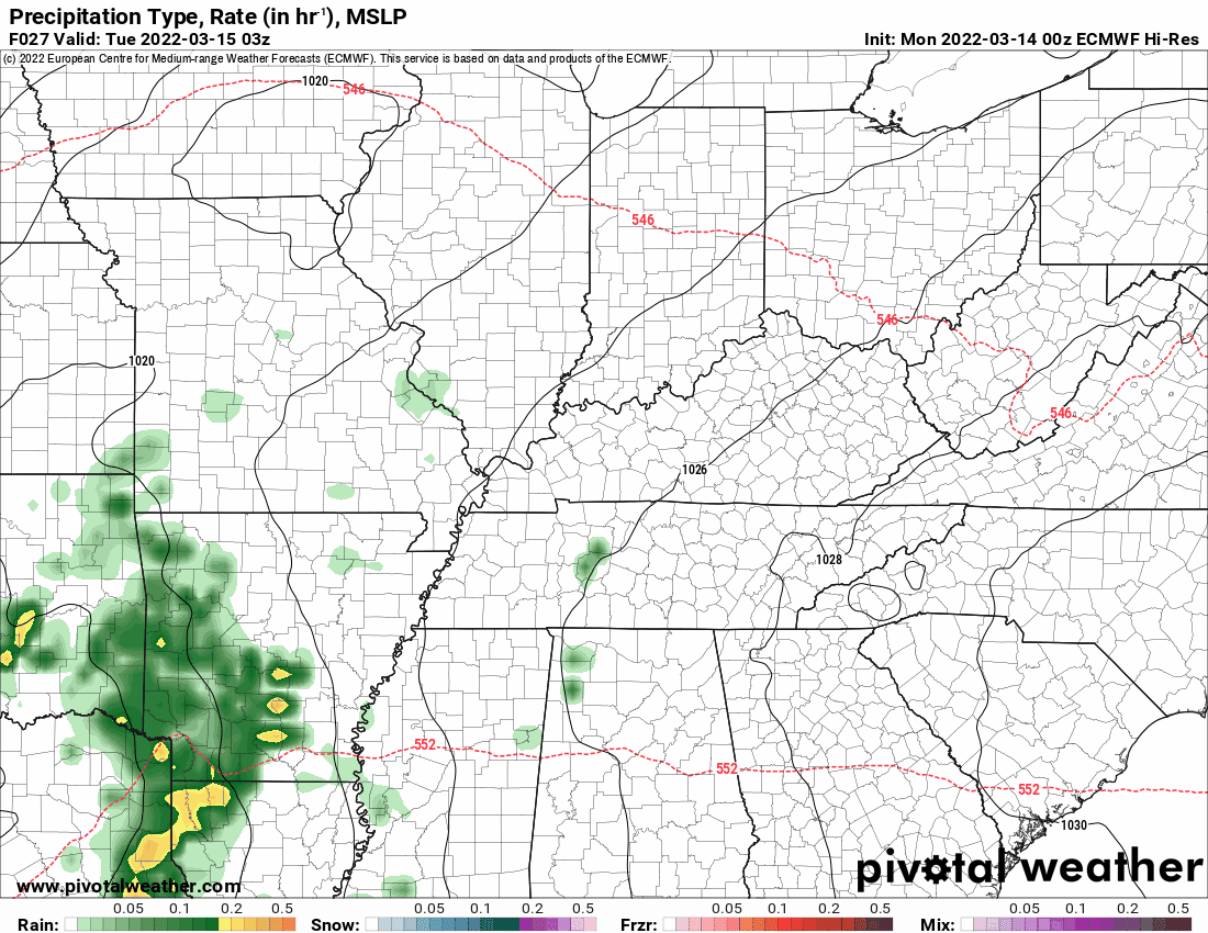 What is the chance of precipitation? MO Bootheel ~  30% /  the rest of SE MO ~ 30%  /    I-64 Corridor South IL ~  0% /  the rest of South IL ~ 20%  /  West KY ~ 30%  /   NW KY (near Indiana border) ~ 10%  /  NW TN ~ 30%