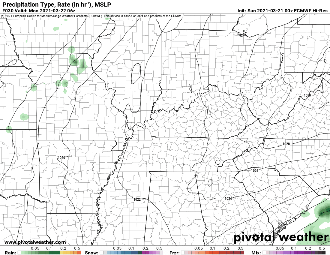 What is the chance of precipitation? SE MO ~ 0% MO Bootheel ~ 0% I-64 Corridor South IL ~ 0% South IL ~ 0% West KY ~ 0% NW KY (near Indiana border) ~ 0% NW TN ~ 0%