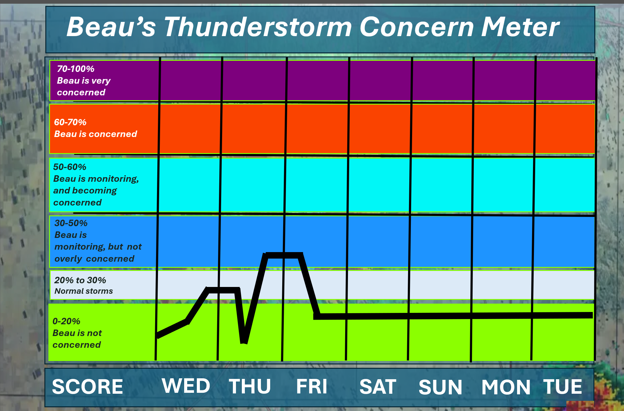 I am monitoring Thursday night and Friday. At this time, severe weather appears unlikely.