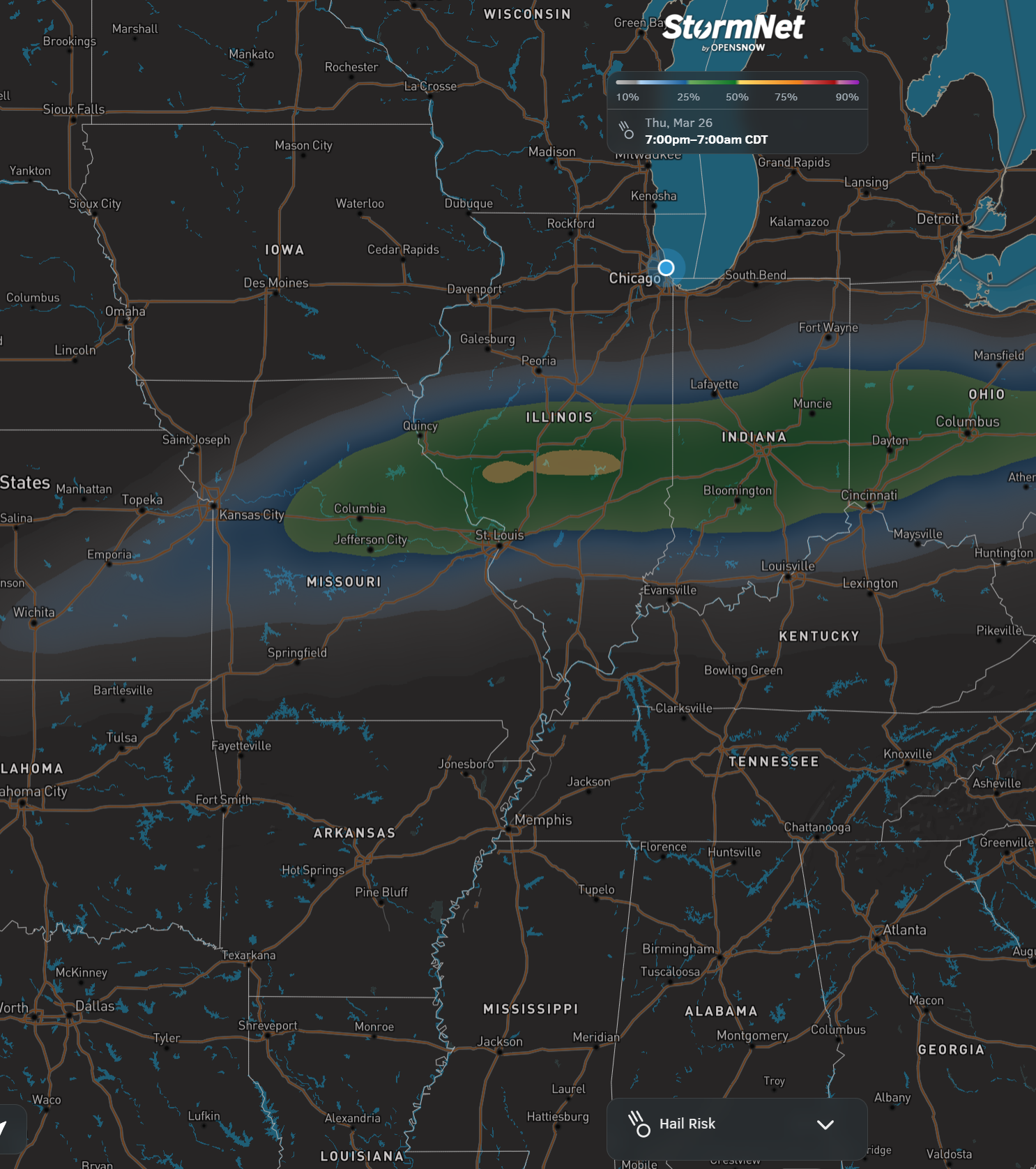 Let’s look at the hail risk from 7 PM to 7 AM Thursday night/Friday morning.