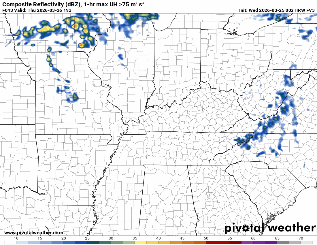 This model pops most of the storms east northeast of our region (on Thursday PM)