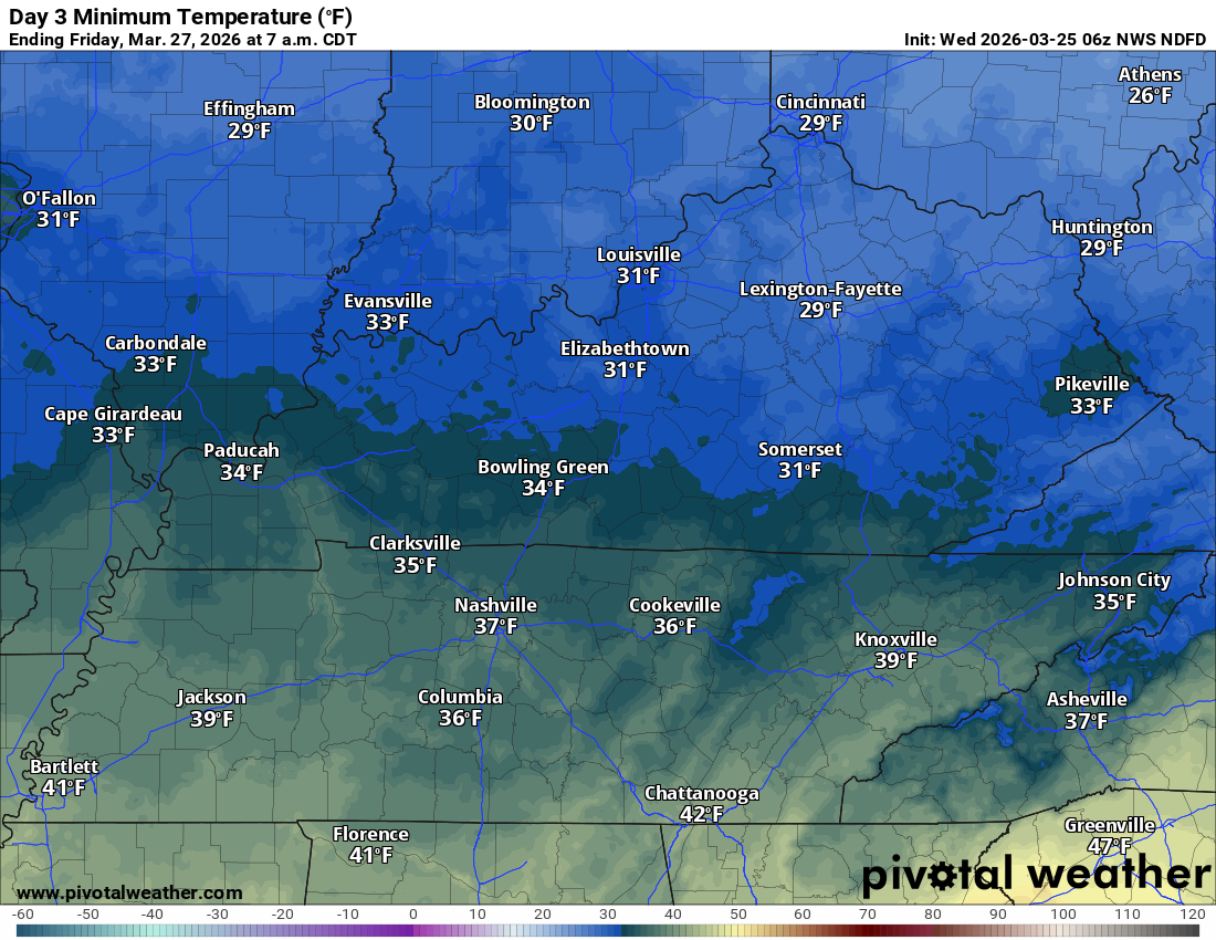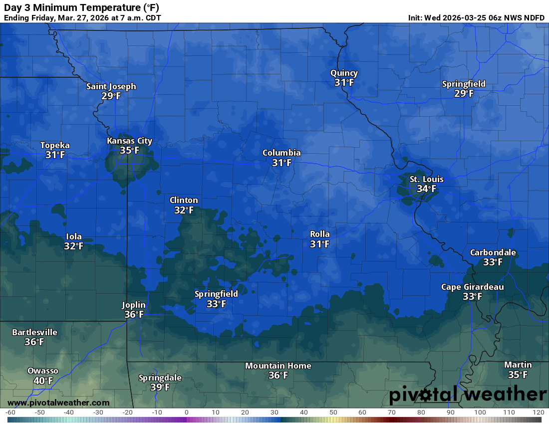 These are the Saturday morning low temperatures. Ignore the timestamp on the image.
