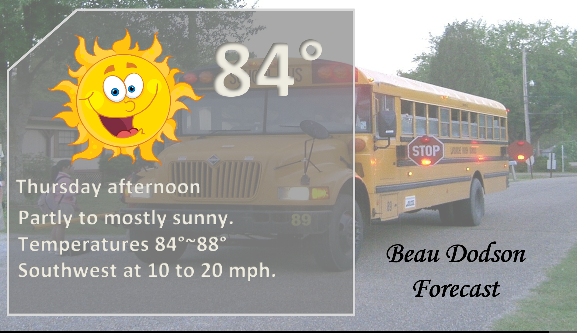 Here is the future-cast radar for early Thursday morning. As you can see, there are a few showers and thunderstorms over our eastern counties.