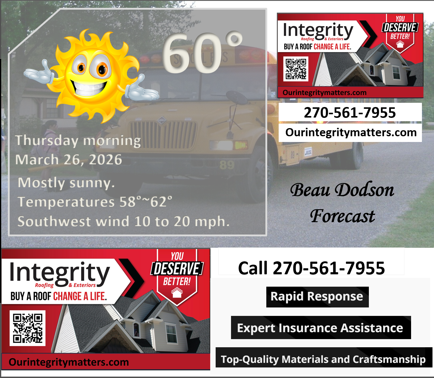 ⛈️ Roof or gutter damage from recent storms? Today’s weather is sponsored by Integrity Roofing. Check out their website at this link https://www.ourintegritymatters.com/