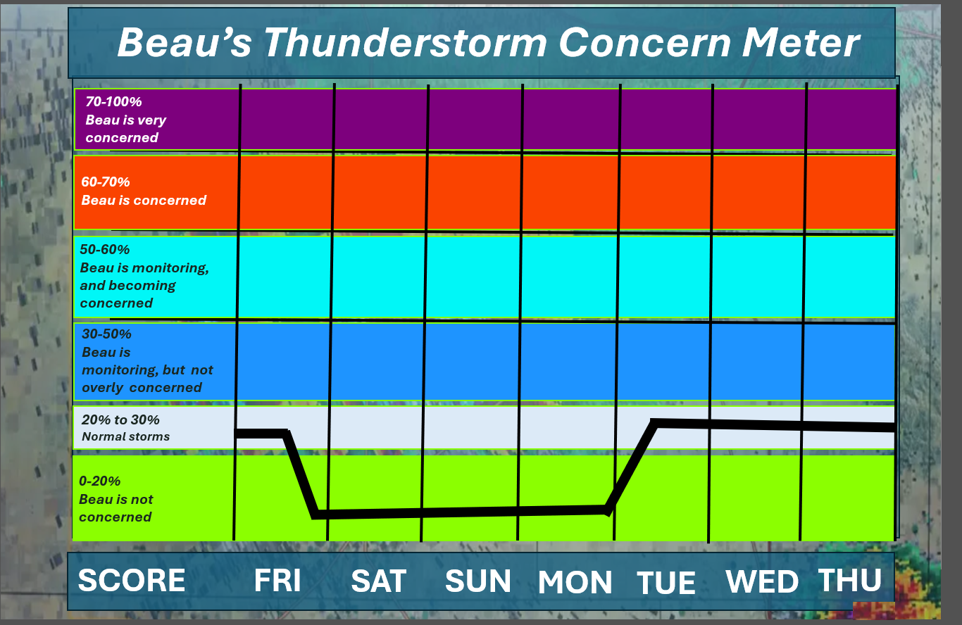 I have shower and thunderstorm chances as early as Tuesday and Tuesday night.