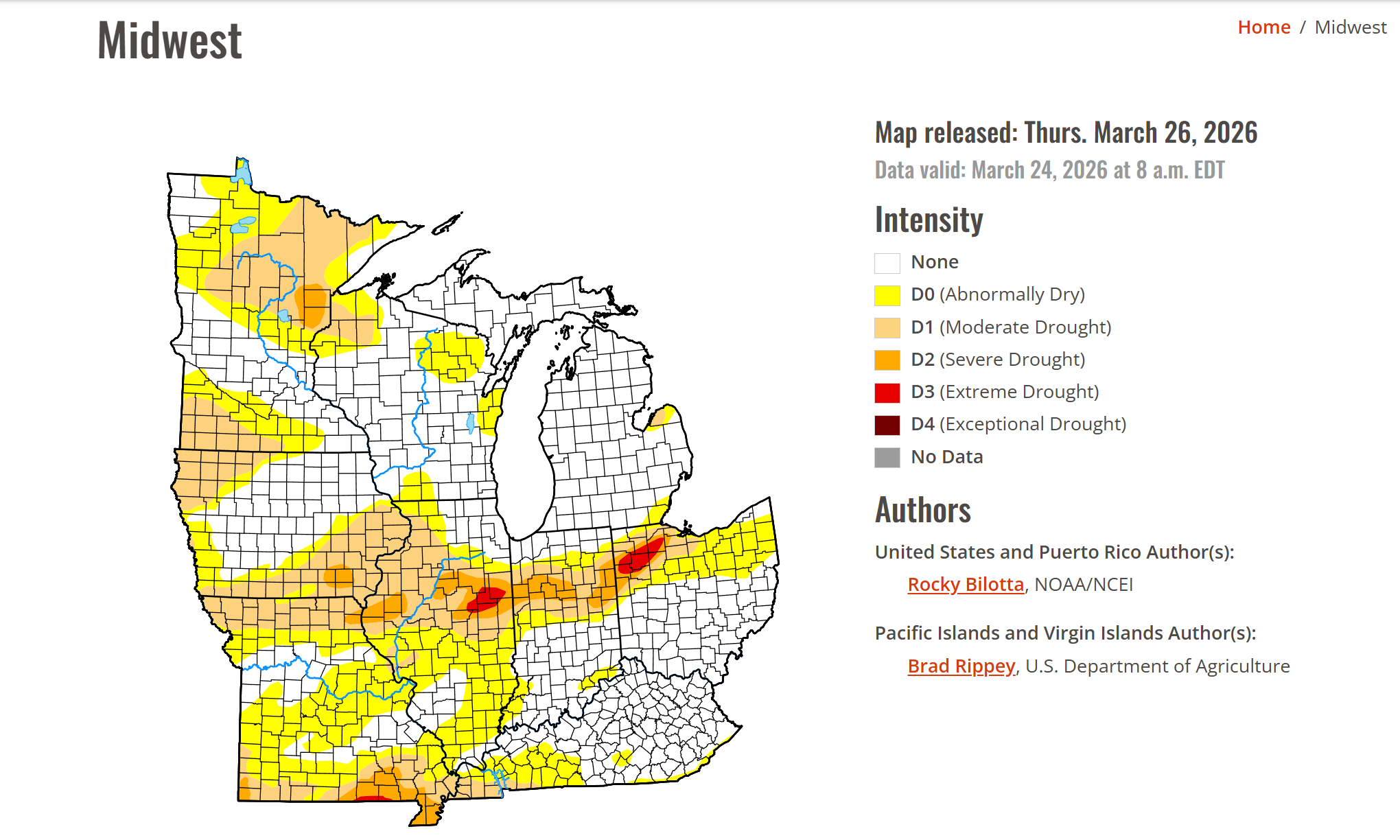 Here are the latest drought monitor numbers. This has improved a little over the last month, but we still need more rain.