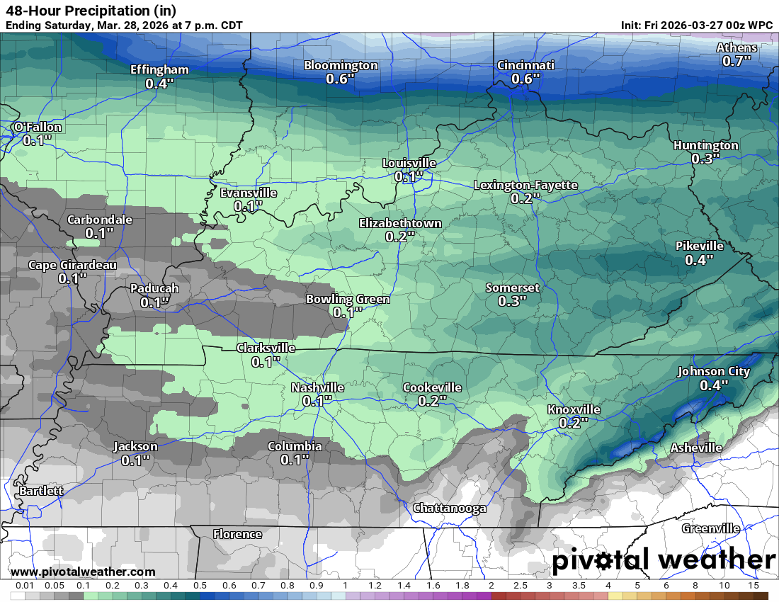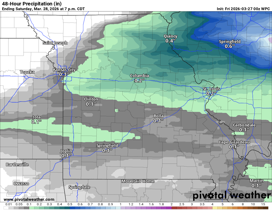 This model pops most of the storms east northeast of our region (on Thursday PM)