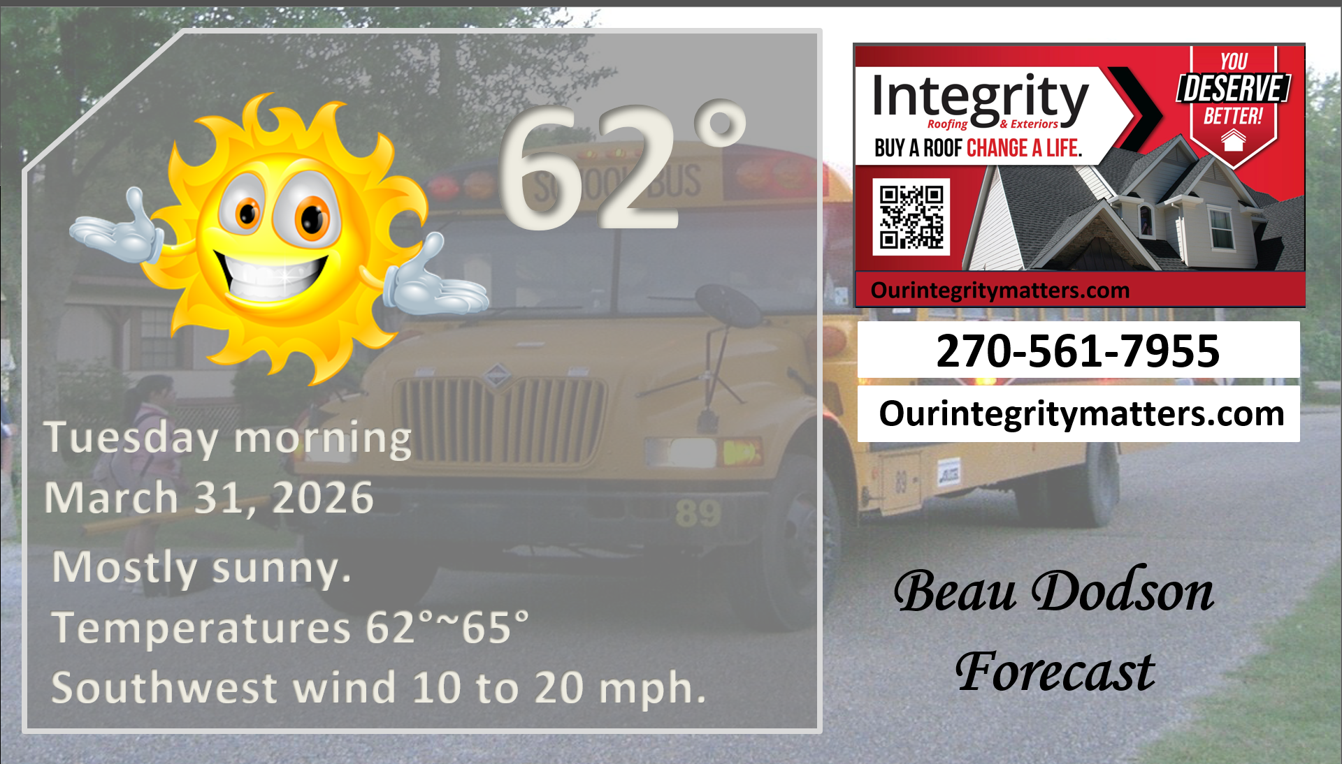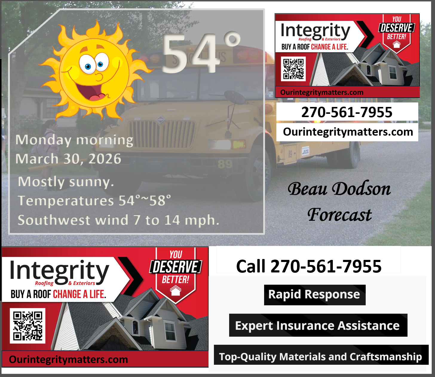 ⛈️ Roof or gutter damage from recent storms? Today’s weather is sponsored by Integrity Roofing. Check out their website at this link https://www.ourintegritymatters.com/