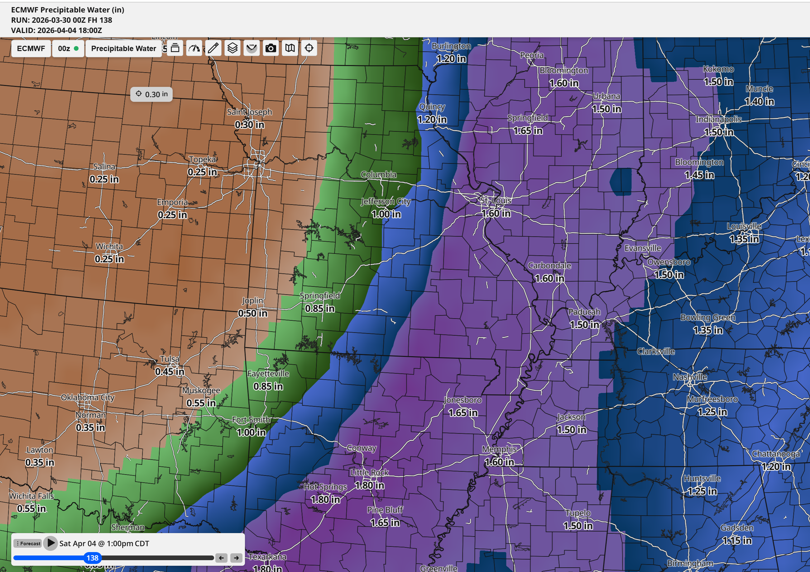 PWAT values will be high on Saturday.  PWAT is a measure of moisture in the atmosphere.