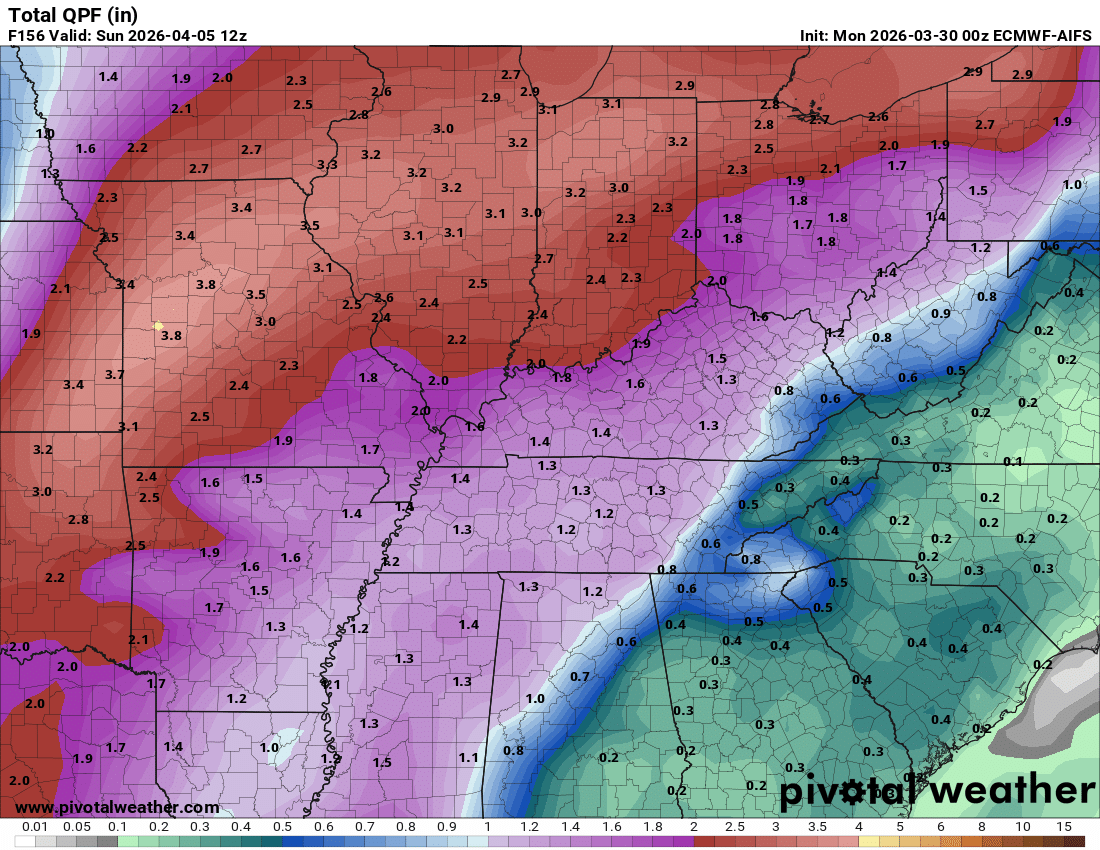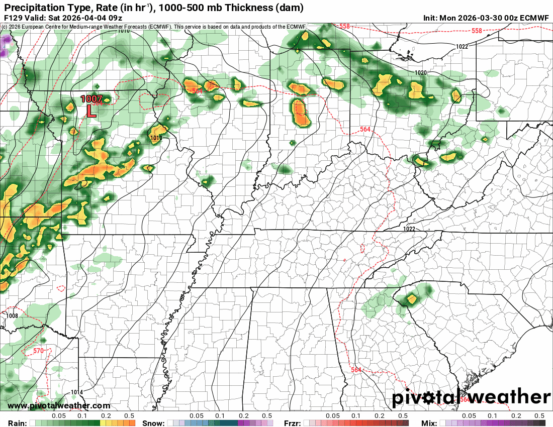 If it slows down, then Easter Sunday will have some showers and thunderstorms, as well.