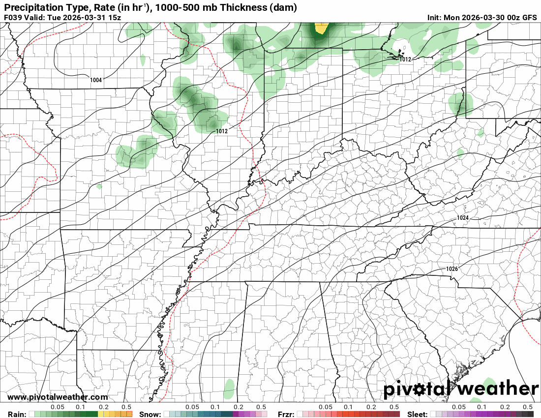 This model pops most of the storms east northeast of our region (on Thursday PM)