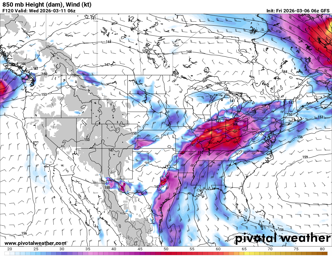 The 850 mb low-level jet perks up Tuesday evening. This will help with wind-shear. One ingredient for severe weather.