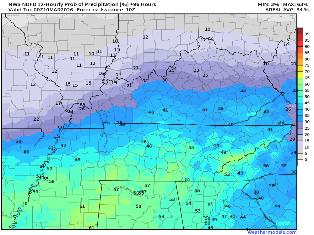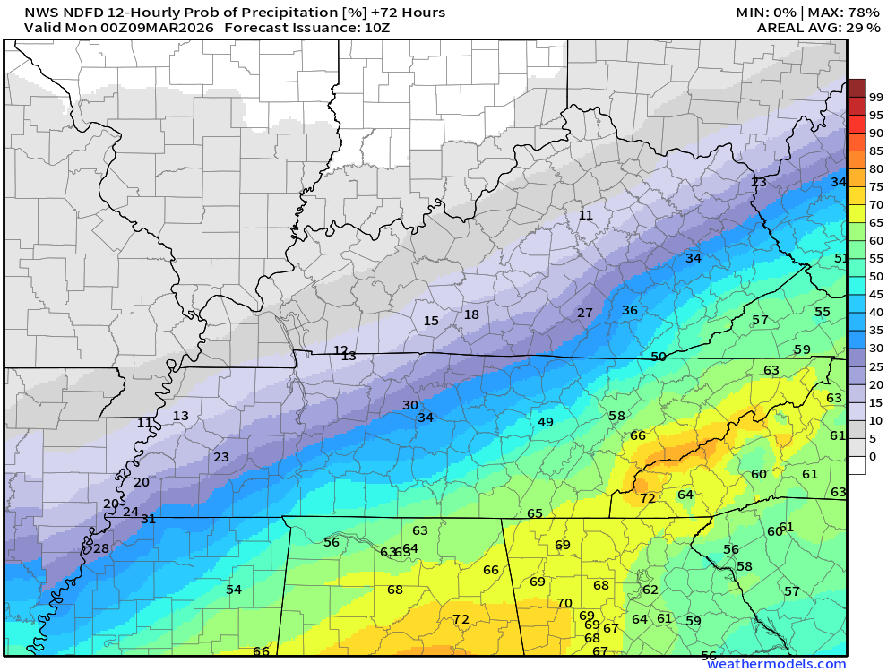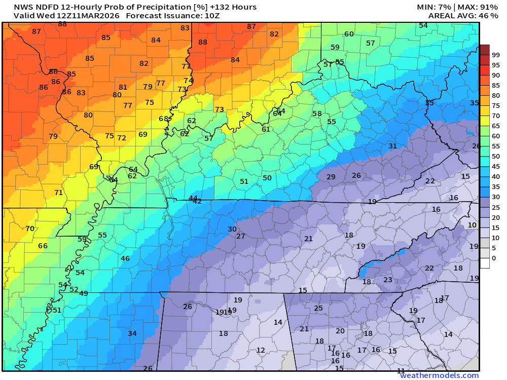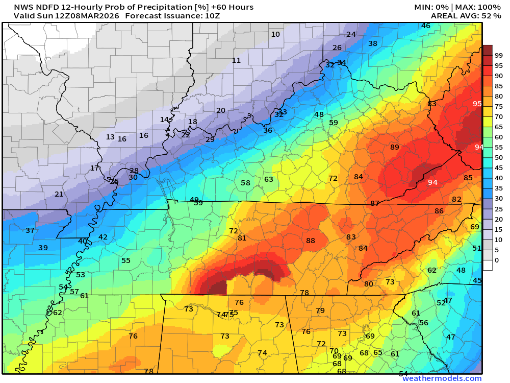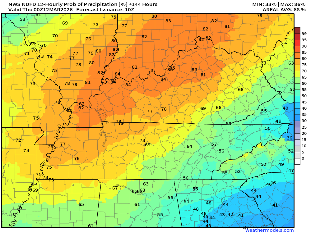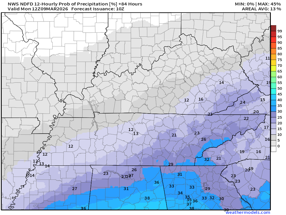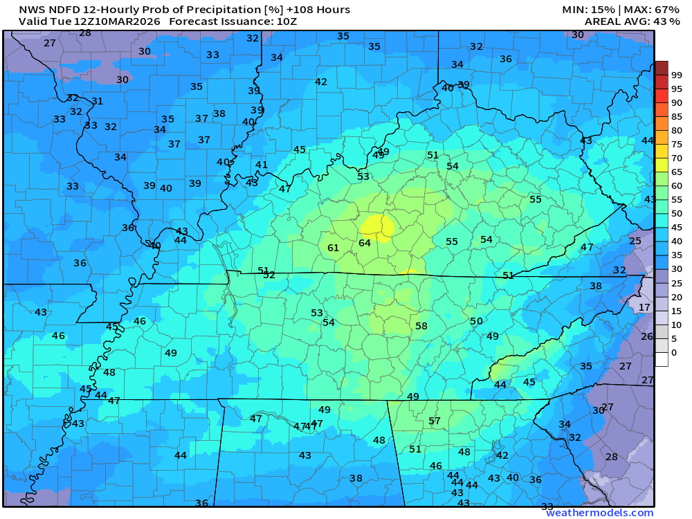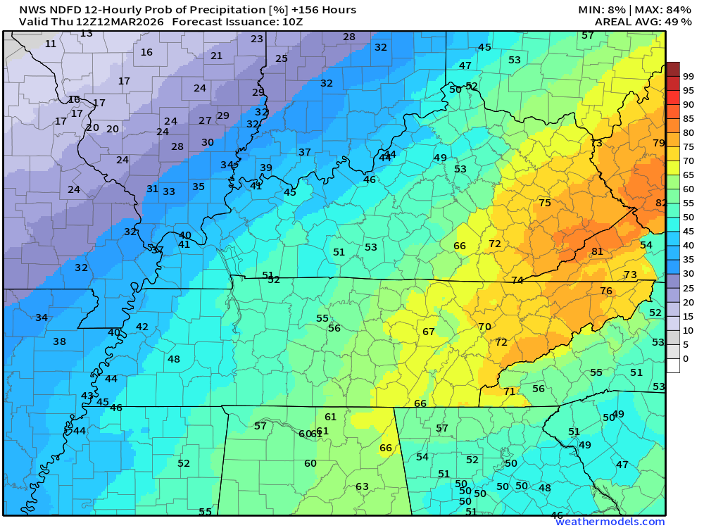 No changes from the last few days. As you can see, this is a complicated forecast for each location in the region for each 12-hour time period. The numbers are going to vary.