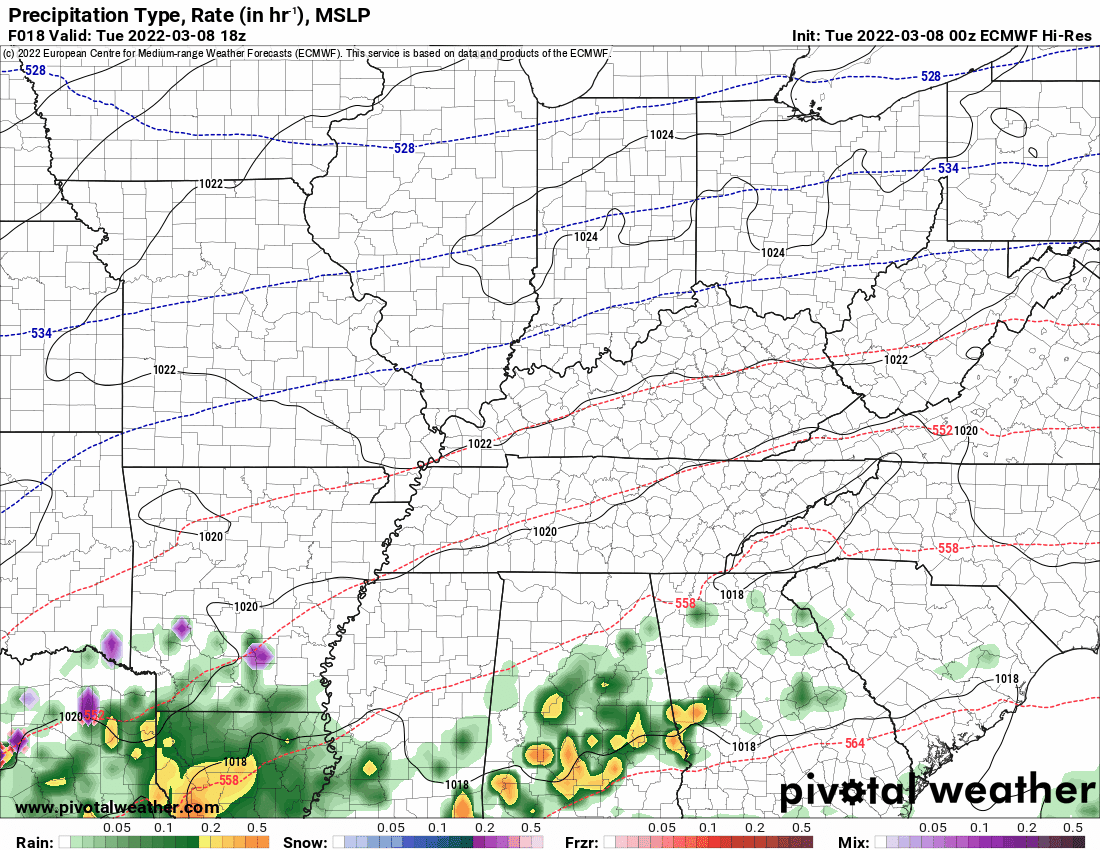 Temperature range: MO Bootheel 20° to 22° /  SE MO 15° to 20° / I-64 Corridor of South IL 14° to 16° /  South IL 16° to 20° /  Northwest KY (near Indiana border) 16° to 20° /  West KY 16° to 20° /  NW TN 16° to 20°