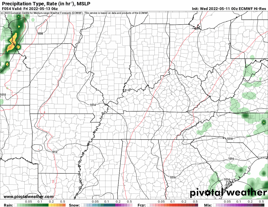 High resolution models are not showing precipitation through Friday. With that said, there could be some isolated thunderstorms tonight into Wednesday evening. Models just aren’t picking up on it.