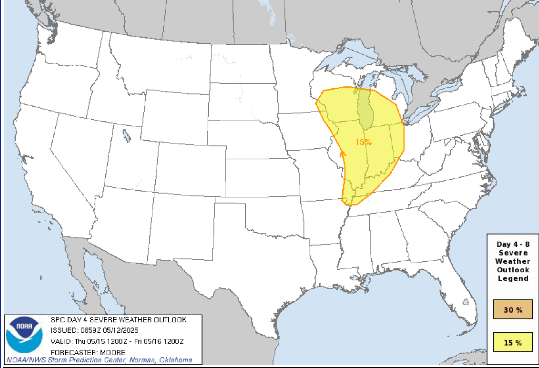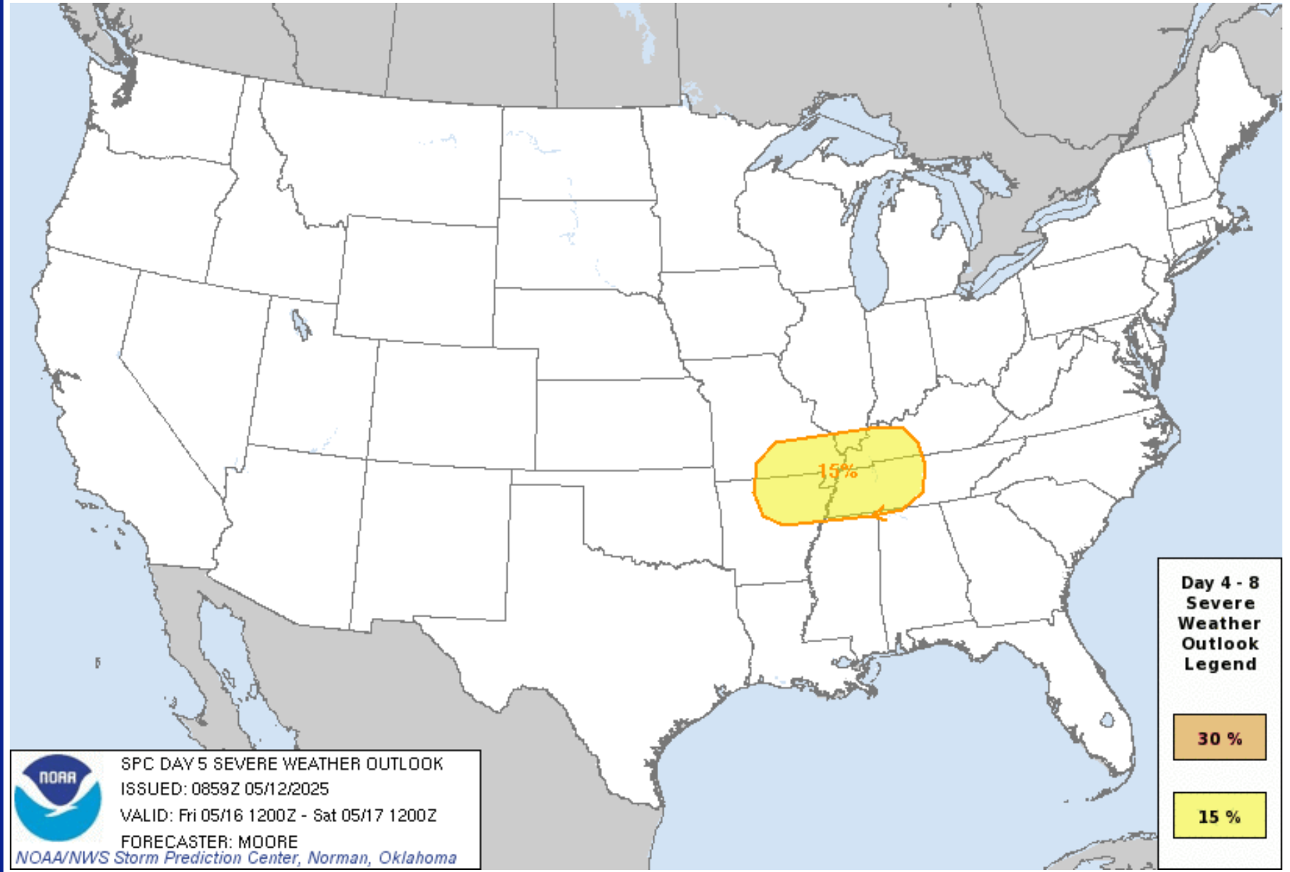 Comment I am monitoring late Thursday into next week.  Several rounds of thunderstorms will be possible.  Some of the storms will likely be severe.  We will need to monitor the tornado potential.