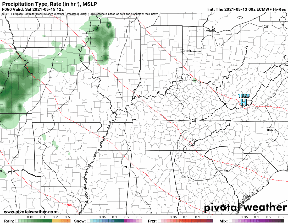 What is the chance of precipitation? SE MO ~ 60% / MO Bootheel ~ 60% / I-64 Corridor South IL ~ 60% / South IL ~ 60% / West KY ~ 60% / NW KY (near Indiana border) ~ 60% / NW TN ~ 60%
