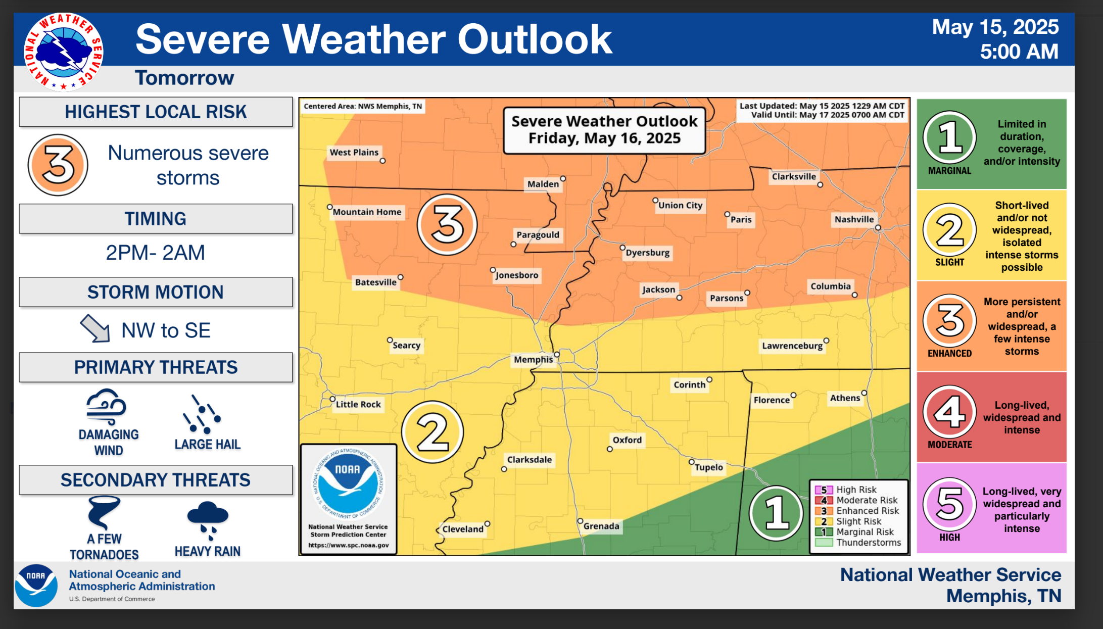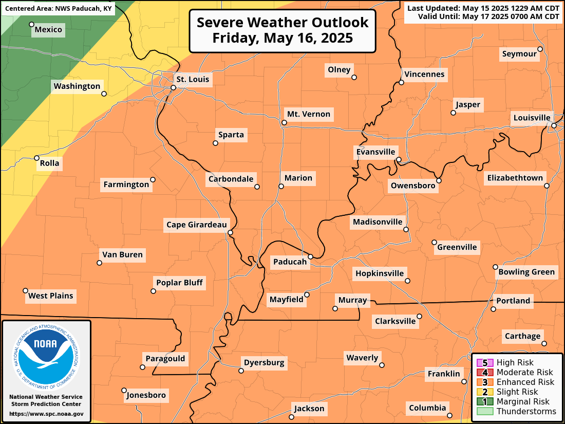 We are at a level three (enhanced) risk of severe weather on Friday. We could go to level four or five. We will see what the Storm Prediction Center decides to do in future updates.