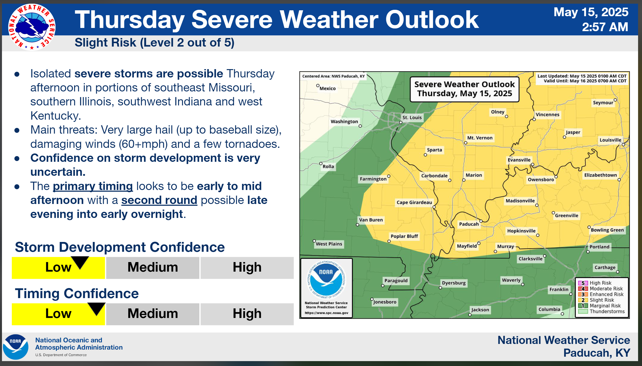 There could be a few storms Friday morning over mainly the Bootheel into Kentucky/Tennessee. Those could produce hail and high wind gusts.