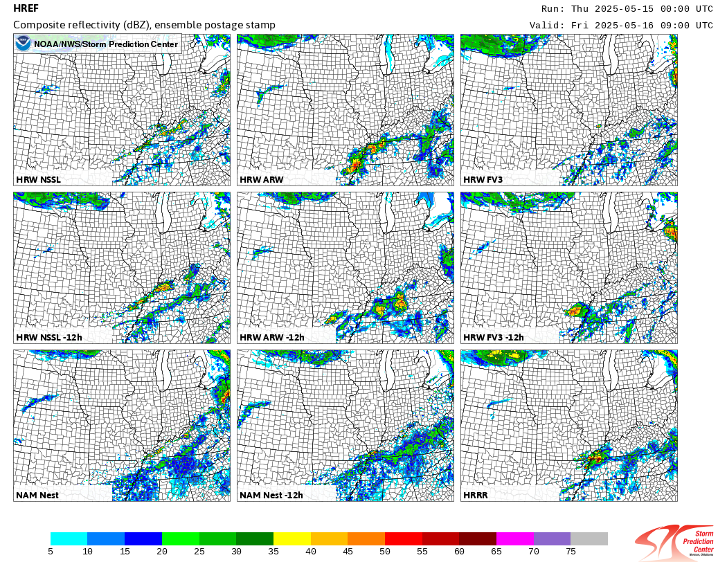 You can see those storms on this graphic. This is nine different models. Notice how several of them pop thunderstorms over our southern counties late tonight and early tomorrow morning. If storms do form, they could produce large hail and high wind gusts. Perhaps the primary risk will be large hail.