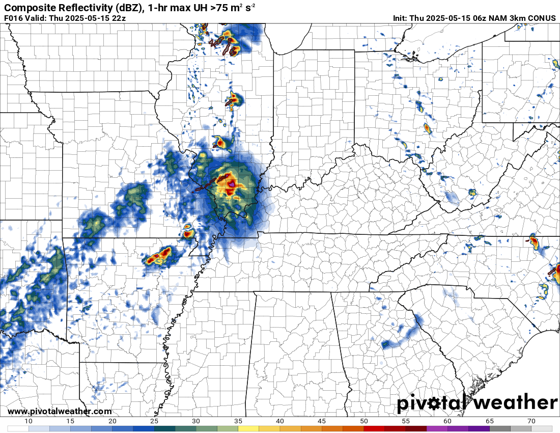 This is the NAM 3K model. It does pop a few storms this afternoon. This is around 5 PM.
