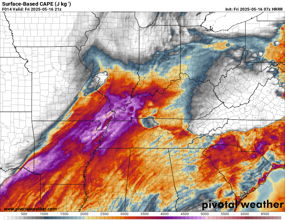The Hrrr model shows volatile air with CAPE values above 3500.  That is a lot of energy for storms to tap into.