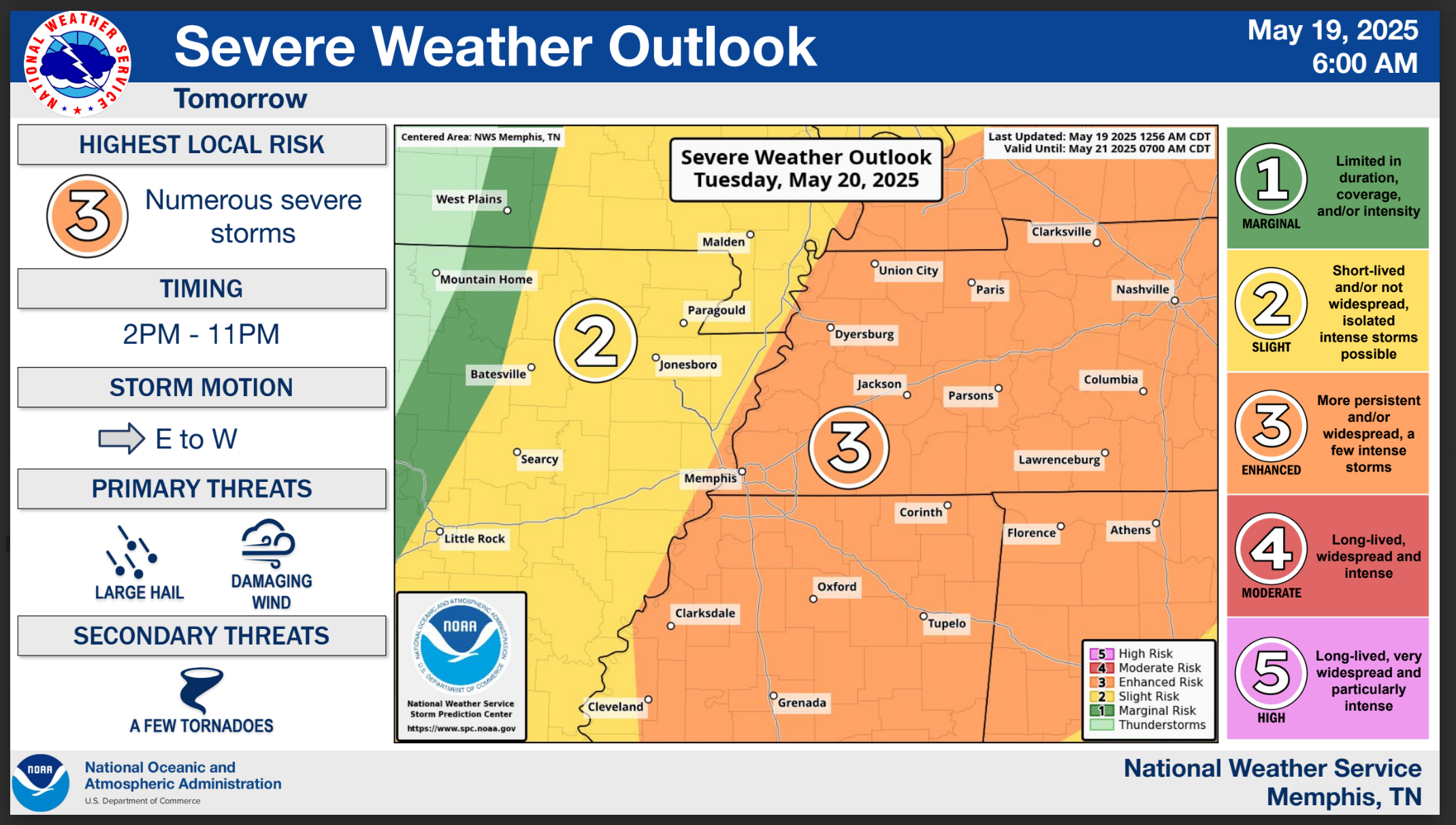 - Monitor weather updates today and tomorrow. Some severe weather will be possible.