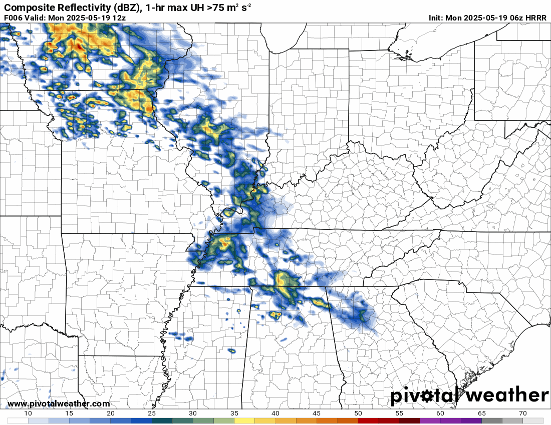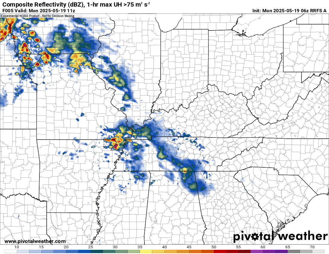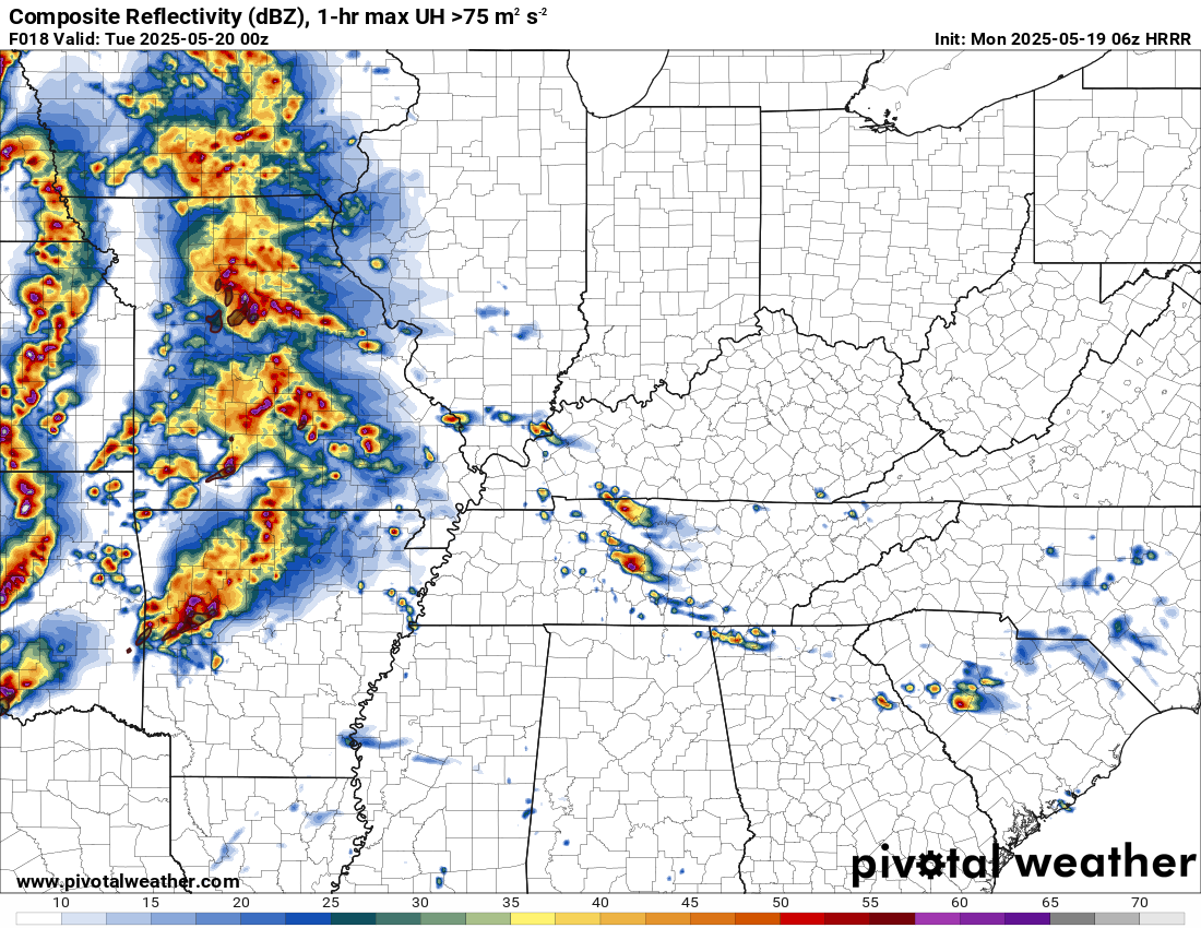 Here is what the Hrrr model shows for this evening. It won’t be exact, but some storms are possible.