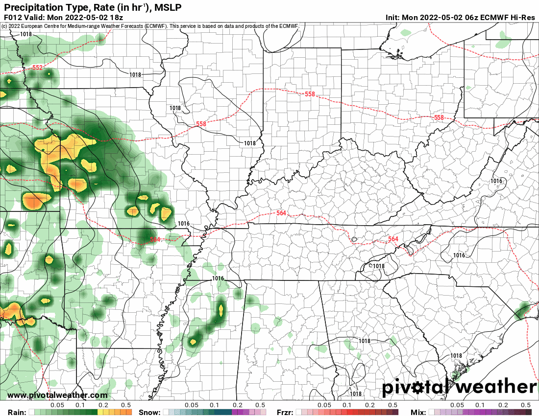What is the chance of precipitation? MO Bootheel ~ 40% / the rest of SE MO ~ 40% / I-64 Corridor South IL ~ 40% / the rest of South IL ~ 40% / West KY ~ 40% / NW KY (near Indiana border) ~ 40% / NW TN ~ 40%