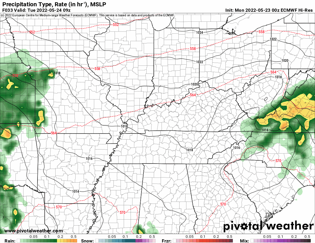 What is the chance of precipitation? MO Bootheel ~ 40% / the rest of SE MO ~ 40% / I-64 Corridor South IL ~ 40% / the rest of South IL ~ 40% / West KY ~ 40% / NW KY (near Indiana border) ~ 50% / NW TN ~ 40%
