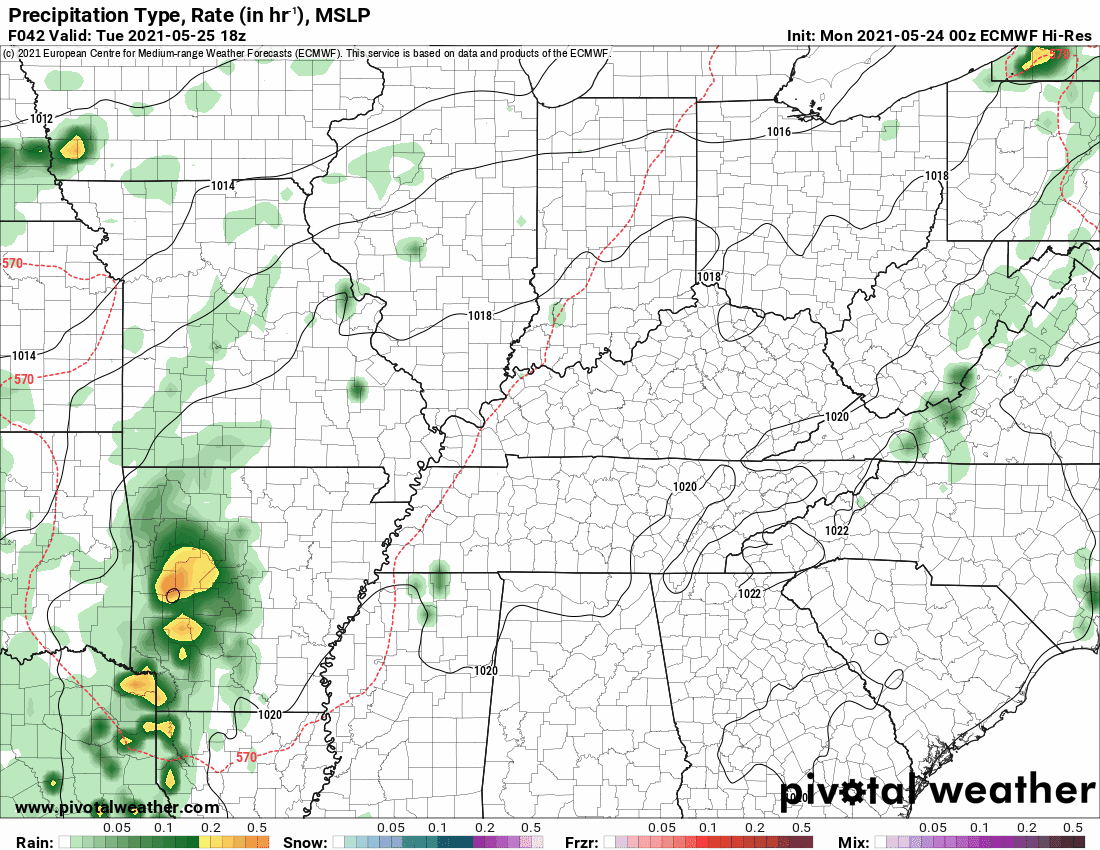 What is the chance of precipitation? MO Bootheel ~ 0% / SE MO ~ 0% / I-64 Corridor South IL ~ 0% / South IL ~ 0% / West KY ~0% / NW KY (near Indiana border) ~ 0% / NW TN ~0%