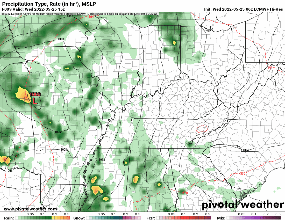 What is the chance of precipitation? MO Bootheel ~ 40% / the rest of SE MO ~ 40% / I-64 Corridor South IL ~ 40% / the rest of South IL ~ 40% / West KY ~ 40% / NW KY (near Indiana border) ~ 40% / NW TN ~ 40%