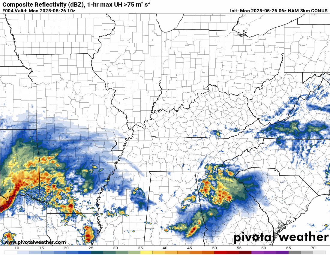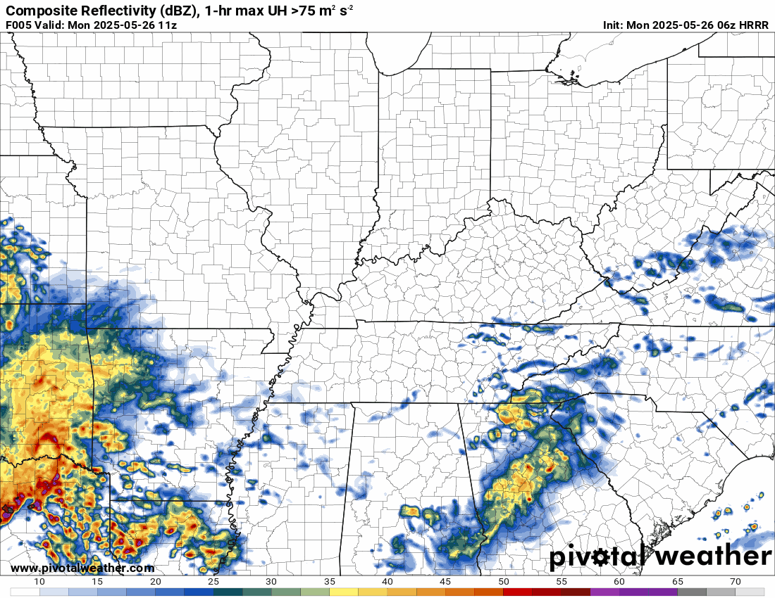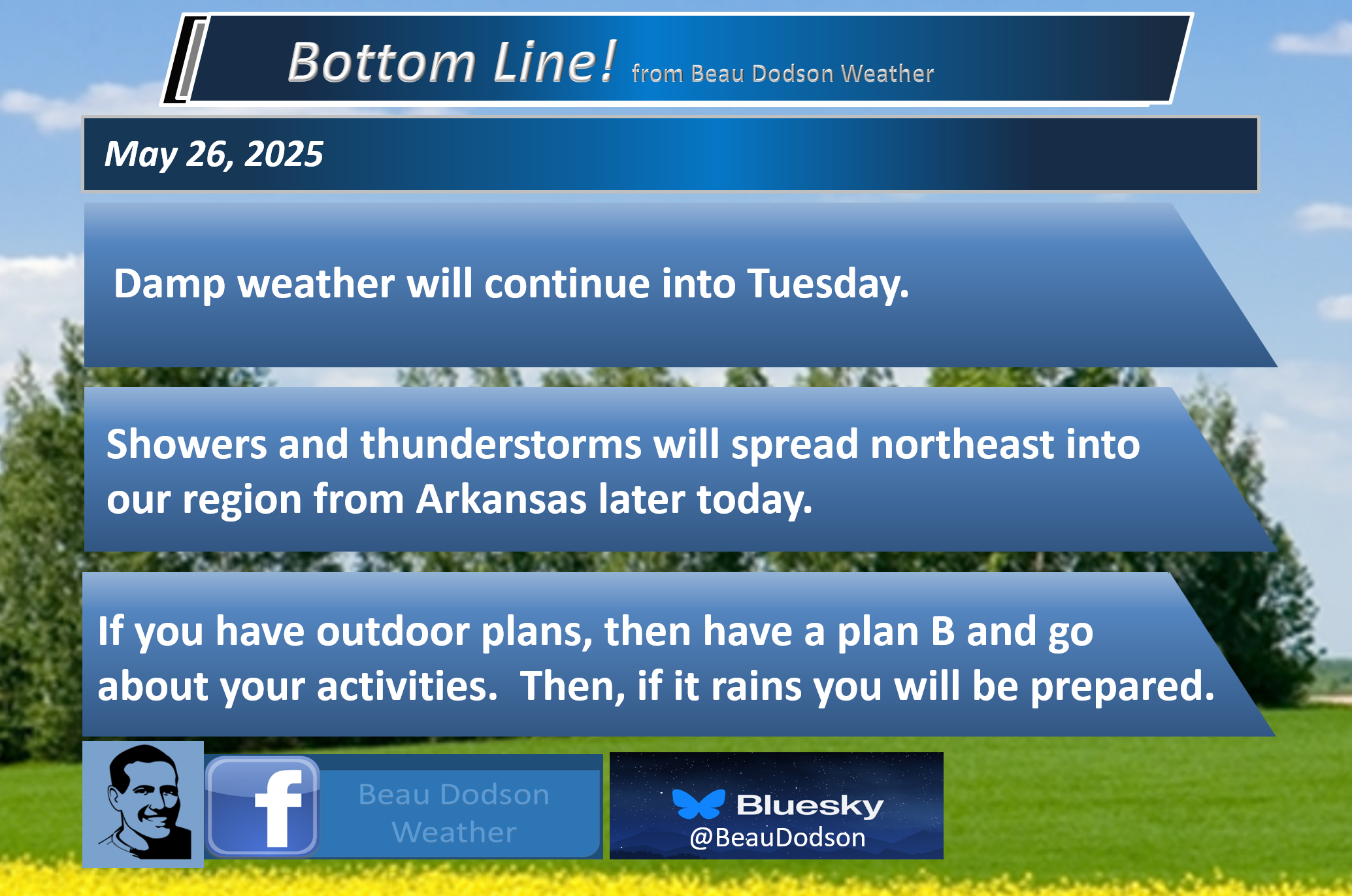 Showers and thunderstorms will overspread the region from Arkansas later this morning and afternoon.  See the future-cast radars below.