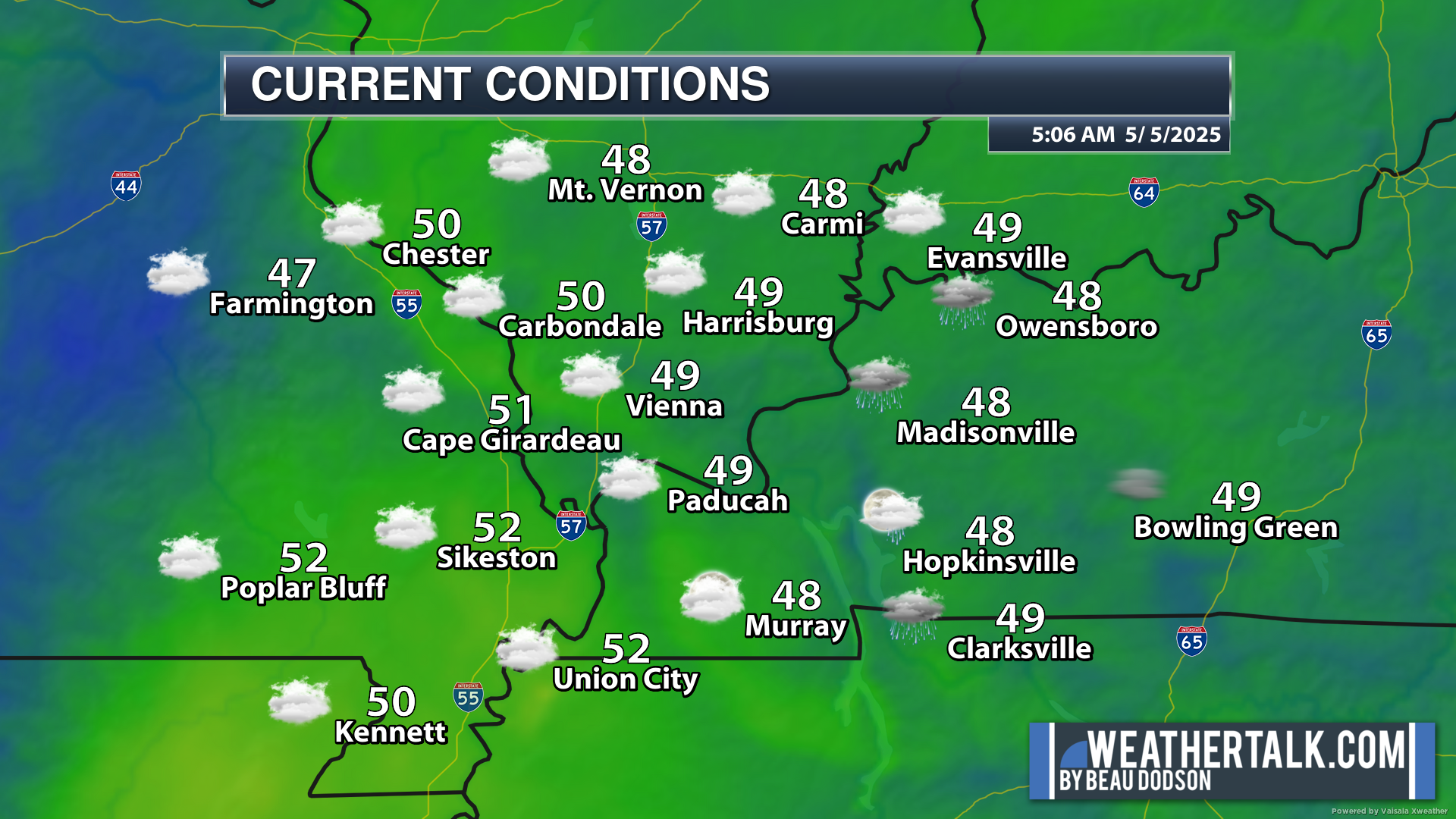 We will still have some clouds in the region. There could still be some spotty light showers across mainly southern Illinois and western Kentucky.