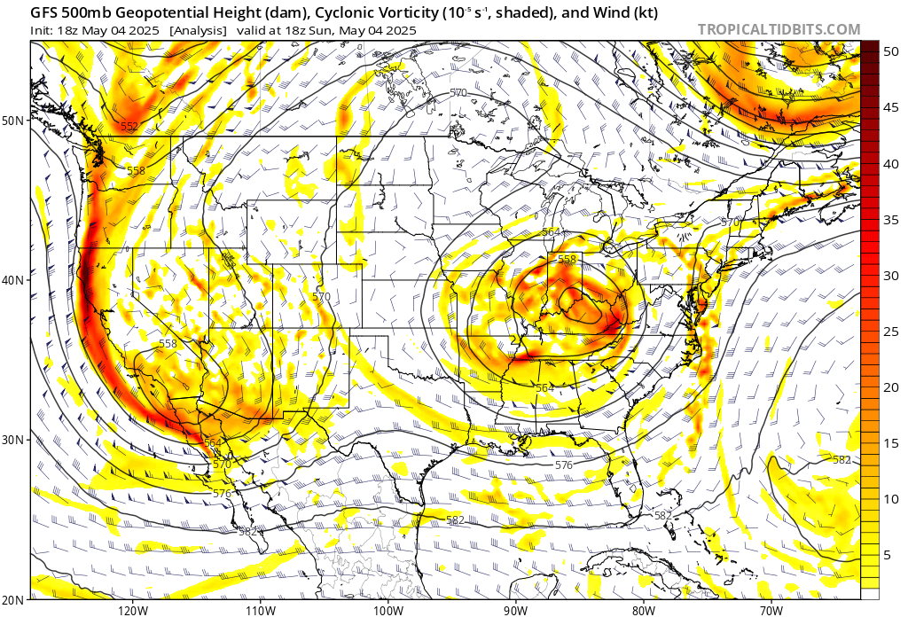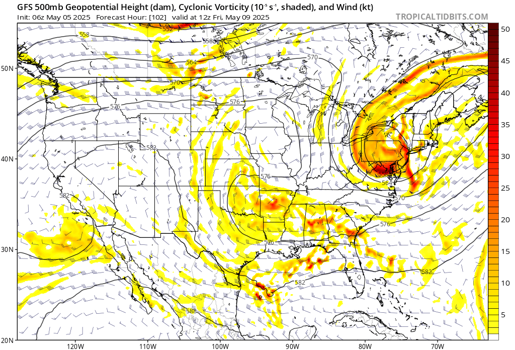 Here is the weekend cut-off on the GFS 500 MB vorticity map.