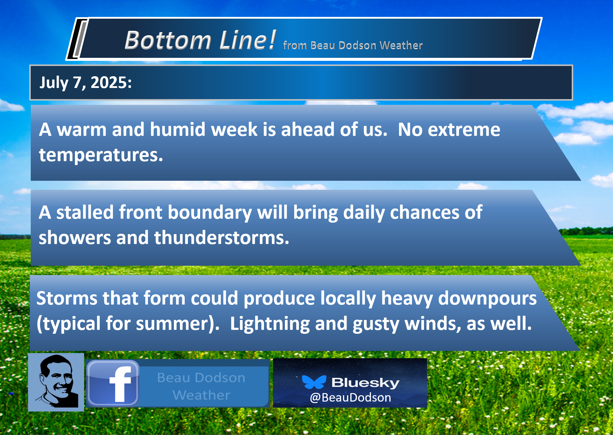 Monday, July 7, 2025: An unsettled pattern. Warm and humid.