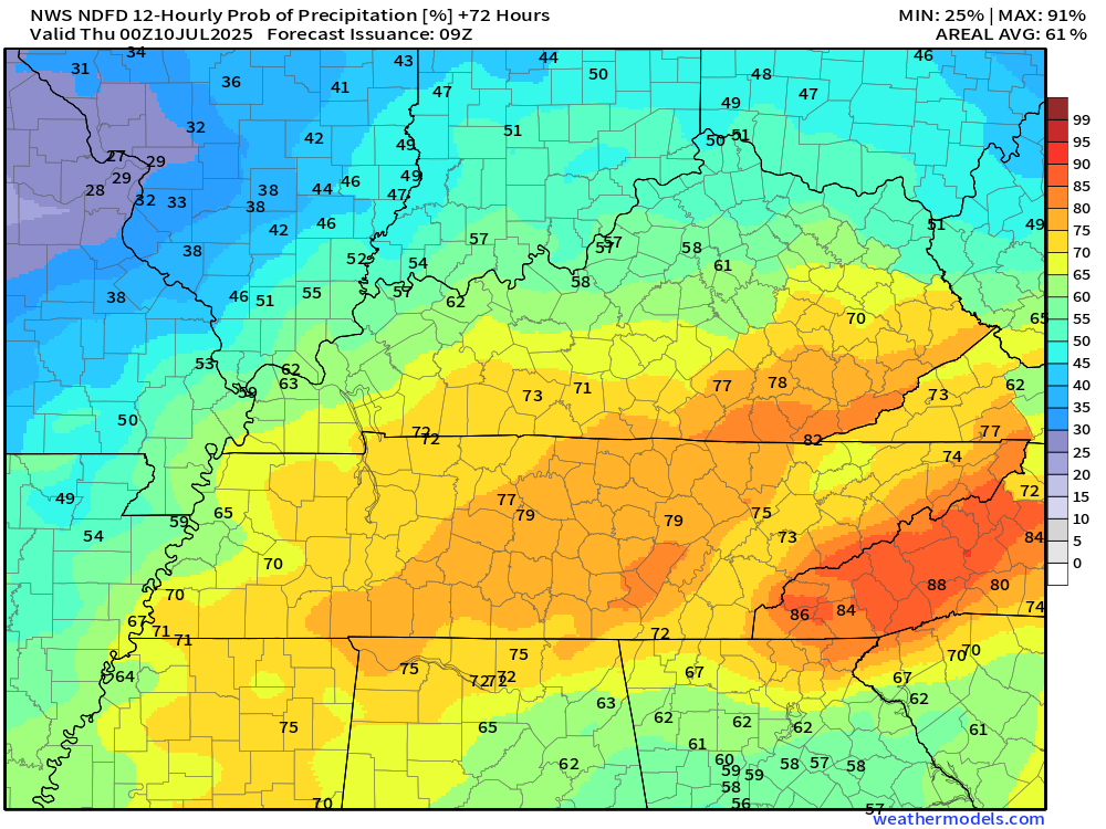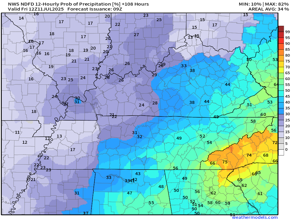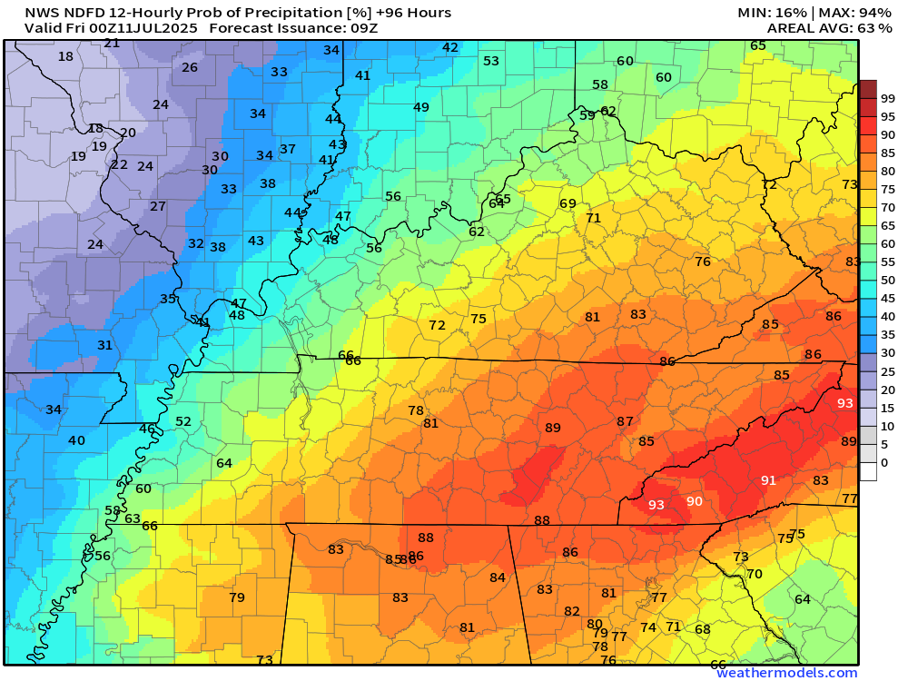 These numbers may vary a bit in the daily video.  I gave the average chance area-wide on the video update.